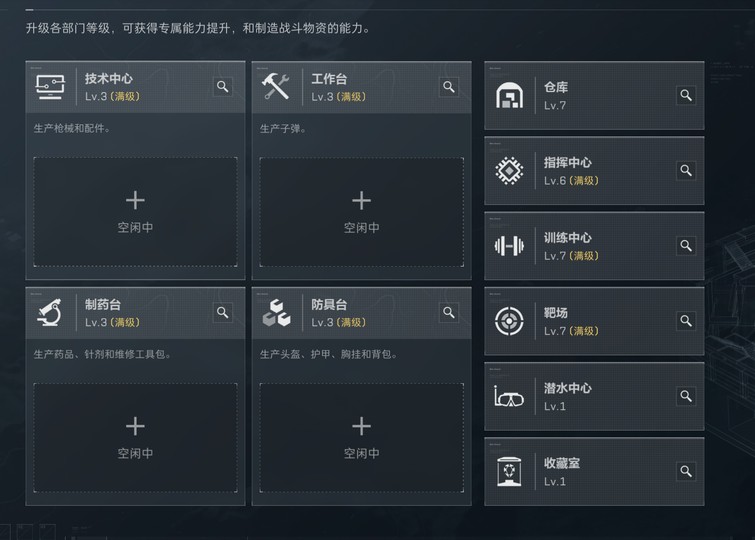倉庫7 指揮6 訓練7 靶場7 潛水1 收藏室1