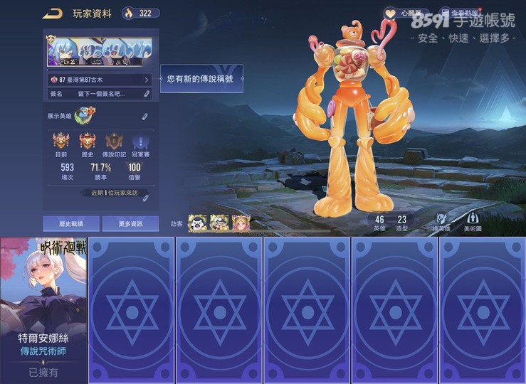 【Garena帳無綁無連、永恆傳說、無VIP、46英、23造】[緊蹦號][便宜售]無綁無連 永恆 高勝