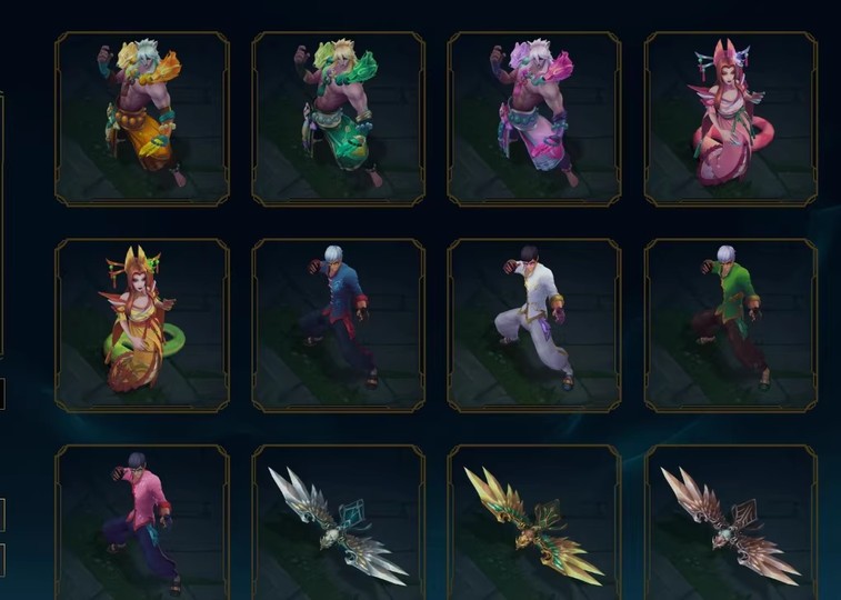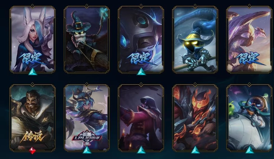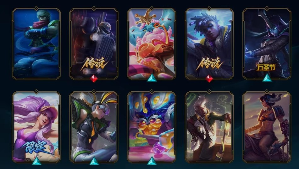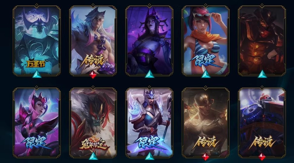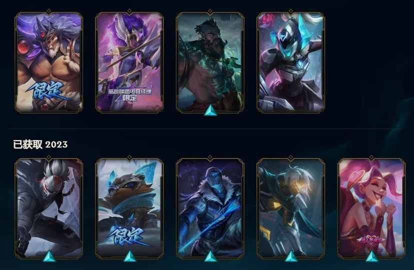 全英雄,還有一萬多精粹和125點券,已經有一年半沒有上號玩了。皮膚如上(一個終極,一個神話,9個傳說,39個史詩)