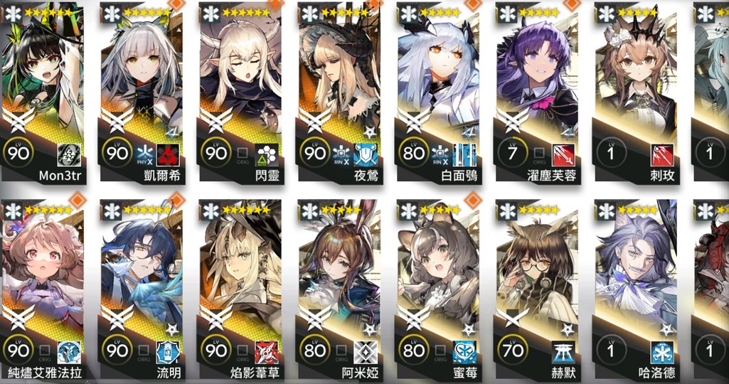 五、極少機會需要借用角色,此帳號未打任何集成戰略、生息演算、部分活動關卡(首通拿源石)。