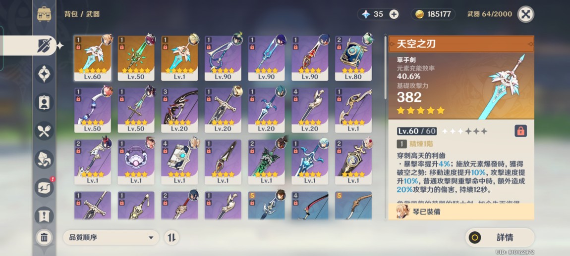 【男、54等、7金角、3金武】Ar54 主打三神 7金 溫迪 雷神 鐘離 (可砍價