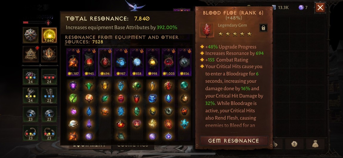 全身傳奇寶石5/5,多重共鳴有多2星寶石十級可自由搭配