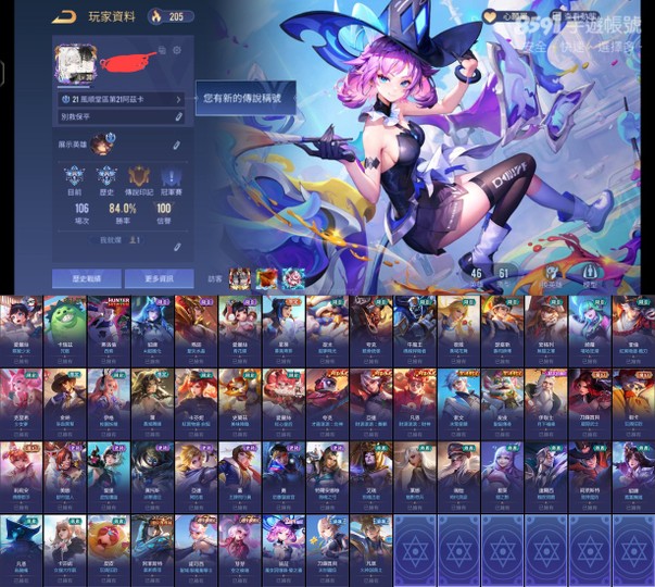 【Garena帳無綁無連、鑽石、V1、46英、61造】Garena無綁無連,目前鑽二,阿茲卡藍標4000分上限,有一個傳說水晶