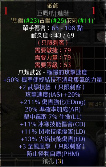 非天梯-嵌飾爪129-武學刺客專用/巨鷹爪/煙花爪/馬賽克爪/數值如圖示