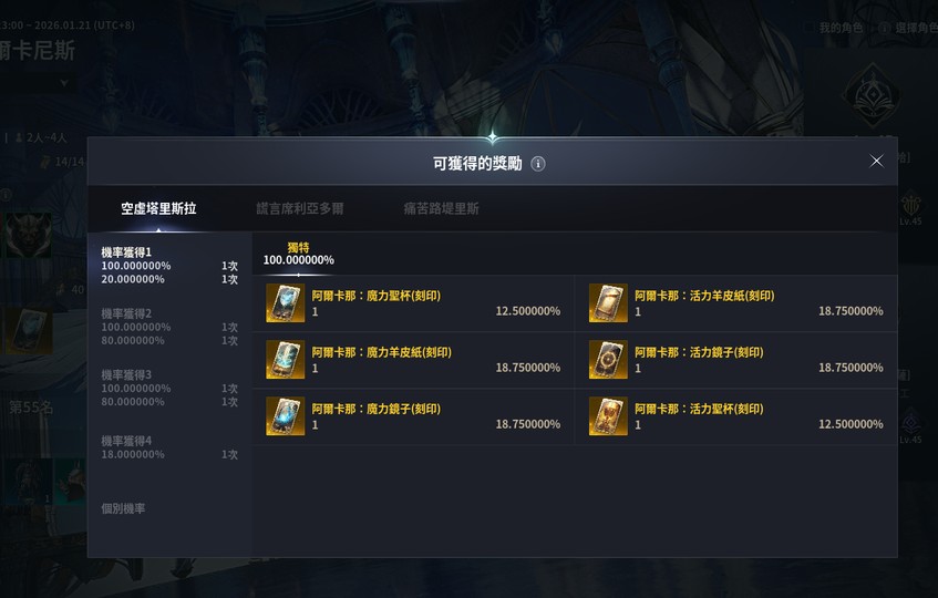 遠征副本背包獎勵(最低60起)/超越副本S評價速通卡片獎勵(最低100起)