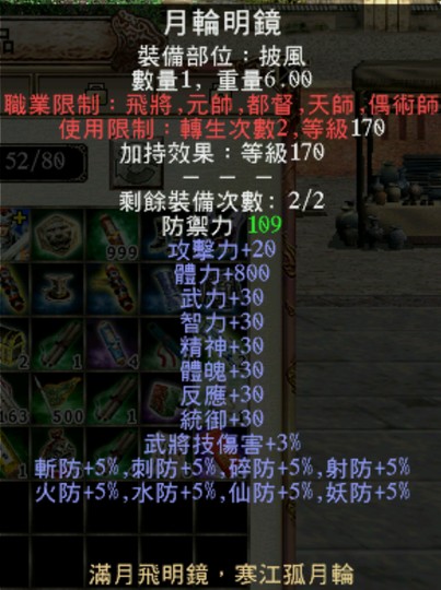 全新(全職)月輪明鏡 目前最好披風 文武皆好用