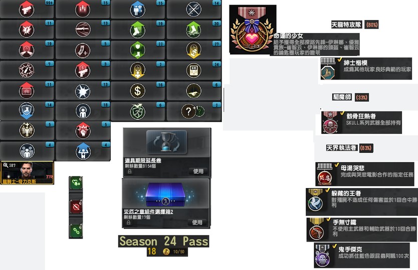 人魚公主-格雷西雅、貴族-崔智云、探路伊琳娜、打殭強化槍枝、愉快的度假等待室標誌