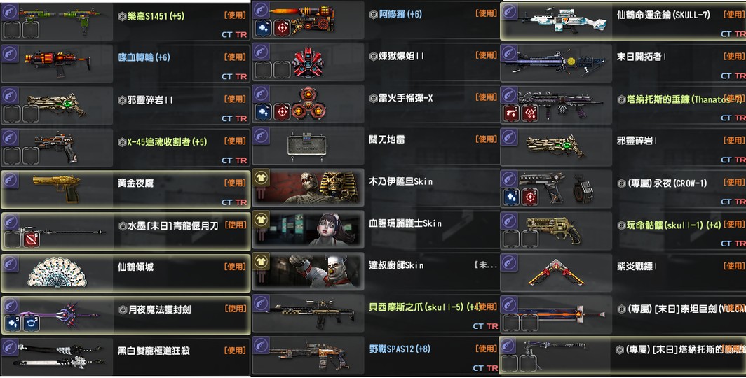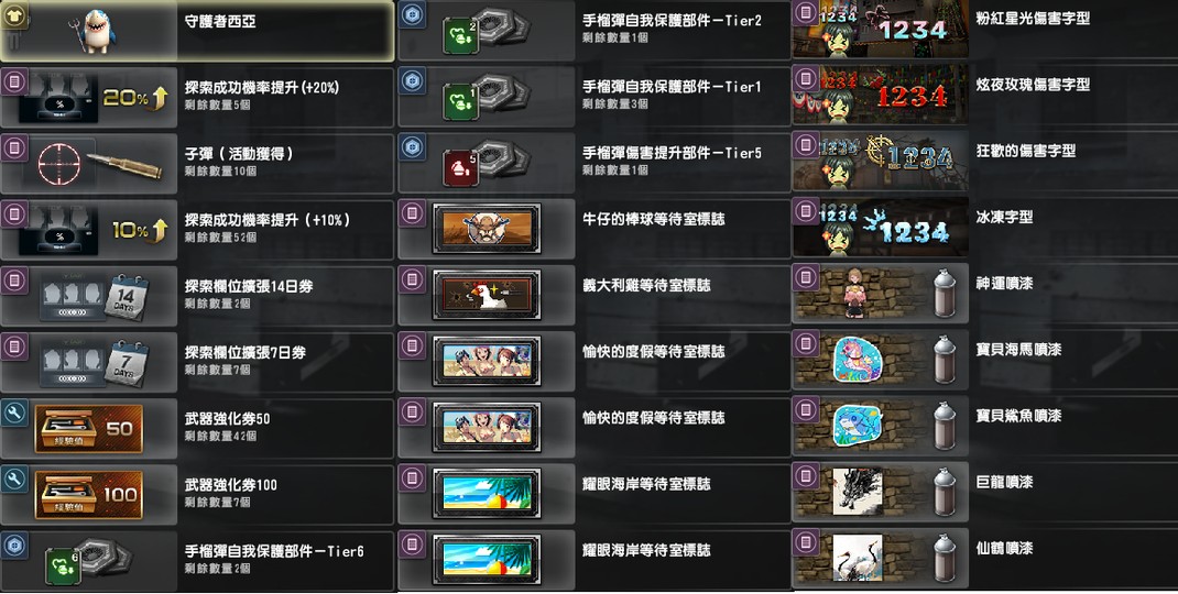 人魚公主-格雷西雅、貴族-崔智云、探路伊琳娜、打殭強化槍枝、末日關刀
