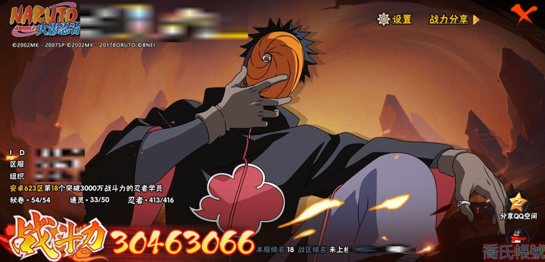 【OBHQTMS097442】戰鬥力:3046W+;段位:暗部2階;本服排名:18;戰區排名:未上榜;VIP15級;S忍54個;A忍104個;通靈獸33個;S忍:仙人模式自來也(5星),大蛇丸(5星),綱手(5星),猿飛日斬(5星),須佐能乎宇智波鼬(5星),自來也(4星),舞之豪傑自來也(4星),死門邁特凱(4星),波風水門(4星),穢土轉生千手柱間(4星),穢土轉生解宇智波斑(4星),天道佩恩(4星),暴怒第六尾漩渦鳴人,九喇嘛連結漩渦鳴人,永恆萬花筒宇智波佐助,忍界大戰春野櫻,須佐能乎旗木卡卡西,傳說中的三忍自來也,百豪綱手,九喇嘛連結波風水門,穢土轉生波風水門,穢土轉生猿飛日斬,穢土轉生千手扉間,千手扉間,千手柱間,木葉創立千手柱間,穢土轉生宇智波斑,宇智波斑,木葉創立宇智波斑,穢土轉生宇智波鼬,須佐能乎宇智波止水,神秘面具男,五影會談宇智波斑,白面具宇智波斑,忍界大戰宇智波帶土,紅夜之刃神秘面具男,四代目風影羅砂,穢土轉生三代目風影,初代目風影烈鬥,二代目水影鬼燈幻月,四代目雷影艾,忍界大戰艾,三代目雷影艾,穢土轉生金角銀角,三代目土影大野木,穢土轉生半藏,二代目土影無,忍界大戰大野木,超佩恩天道,穢土轉生長門,仙人模式藥師兜,最終章大筒木舍人,大筒木桃式,大筒木金式;A忍:邁特凱(5星),猿飛阿斯瑪(5星),疾風傳我愛羅(5星),蠍(5星),幹柿鬼鮫(5星),飛段(5星),死司憑血飛段(5星),旗木卡卡西(4星),五代目水影照美冥(4星),仙人模式漩渦鳴人(3星),須佐能乎宇智波佐助(3星),百豪春野櫻(3星),忍界大戰秋道丁次(3星),忍界大戰日向寧次(3星),宇智波止水(3星),青年波風水門(3星),青年艾(3星),忍界大戰土臺(3星),青年長門(3星),小南(3星),宇智波鼬(3星),迪達拉(3星),六代目水影長十郎(3星),五代目雷影達魯伊(3星),四代目土影黑土(3星),初始形態機械鳴人,忍者之路神秘面具男,九尾查克拉漩渦鳴人,萬花筒寫輪眼宇智波佐助,疾風傳咒印宇智波佐助,俠隱江湖宇智波佐助,宇智波泉奈,忍界大戰李洛克,忍界大戰天天,最終章日向雛田,幻之真容旗木卡卡西,萬花筒寫輪眼旗木卡卡西,忍界大戰旗木卡卡西,元氣夏日旗木卡卡西,驚門邁特凱,忍界大戰邁特凱,青春爆炸邁特凱,穢土轉生猿飛阿斯瑪,七夕限定猿飛阿斯瑪,地陸,新春限定宇智波止水,志村團藏,火影繼承人猿飛日斬,新春限定波風水門,忍界大戰我愛羅,新春限定我愛羅,忍界大戰勘九郎,近松十人衛千代,夏日泳裝照美冥,俠隱江湖照美冥,穢土轉生桃地再不斬,漂泊武士桃地再不斬,桃地再不斬,奇拉比,忍界大戰奇拉比,達魯伊,青年三船,三船,俠隱江湖綱手,妖怪奇譚綱手,漂泊武士千手扉間,俠隱江湖藥師兜,半蛇斗篷藥師兜,不風,不緣,不動,漂泊浪客佩恩六道,夏日泳裝小南,新春限定小南,漂泊浪客小南,絕,黑絕,角都,曉創生角都,地怨虞角都,穢土轉生角都,曉大蛇丸,新春限定大蛇丸,緋流琥蠍,百機操演蠍,曉創生蠍,新春限定宇智波鼬,夏日限定宇智波鼬,鮫肌融合幹柿鬼鮫,穢土轉生迪達拉,新春限定迪達拉,阿飛,惡靈之影飛段,曉創生飛段,暴怒宇智波帶土,漂泊浪客宇智波帶土,加藤斷,俠隱江湖大野木,忍者大戰黃土,火之意志繼承者卑留呼,羈絆神農,猿飛木葉丸,桃式顯現漩渦博人,夏日限定黑土;通靈獸:忍犬,藍蛇,蛤蟆吉,忍龜,鐮鼬,猿魔,山椒魚,蜃,蛞蝓,熊貓,蛤蟆仙人,鮫鯊,蛤蟆健,烏鴉,蛤蟆龍,蛤蟆廣,夢貘,鷹,二尾又旅,,怒鬼,蜘蛛,砂之守鶴,祥瑞金烏,怒鬼無臂,怒鬼爪,萬蛇,蛞蝓俠隱江湖,辛牙,變色龍,鵺;時裝:狂野鮫鯊幹柿鬼鮫,蜀面豪傑舞之豪傑自來也,百戰佩恩天道,百戰大蛇丸,桀驁之刃猿飛阿斯瑪,鋼鐵之軀邁特凱,百戰宇智波鼬須佐能乎,百戰波風水門,終焉剎寂宇智波帶土漂泊浪客,冷玉豪情綱手俠隱江湖,斑之附身神秘面具男忍者之路,詭刃寒芒藥師兜俠隱江湖,龍吟浪客千手扉間漂泊武士,太極靈韻日向花火武當宗師,仲夏微光宇智波鼬夏日限定,雷電之力艾四代目雷影,飛瀑流泉長十郎六代目水影,傳說的光芒波風水門,風之守護我愛羅忍界大戰,純白之心白,紅月映雪宇智波鼬新春限定,水之妖姬照美冥五代目水影,菁英忍者旗木卡卡西少年,編織虛實宇智波鼬,可愛睡衣漩渦鳴人,龍的傳人李洛克截拳宗師,緋櫻綻放春野櫻百豪,血霧怪人幹柿鬼鮫,血紅辣椒旋渦玖辛奈少女png,千雪霜華照美冥俠隱江湖,剎那的藝術迪達拉,命定之戰宇智波佐助疾風傳,土之固守大野木三代目土影,烈火華服宇智波止水新春限定,熊貓少女天天峨眉宗師,烈土霓裳黑土四代目土影,神使之花小南新春限定,初代目火影千手柱間,火之意志綱手百豪,憤怒的伊始宇智波帶土暴怒,風靈素錦猿飛未來,驚雷掠影達魯伊五代目雷影,隱藏內心的面具旗木卡卡西暗部,睿勇新星千手扉間少年,驕陽翠羽照美冥夏日泳裝;【623】有妙木山328差一個,qq有120q幣