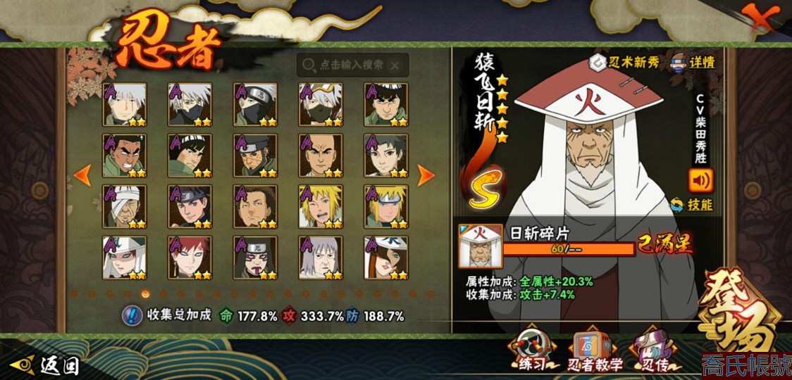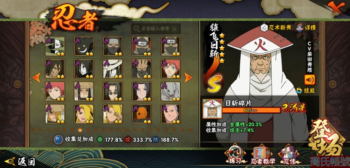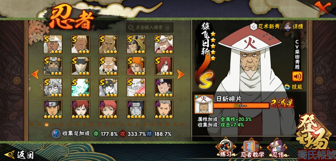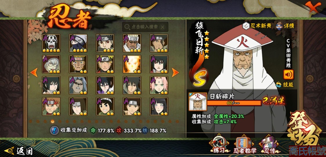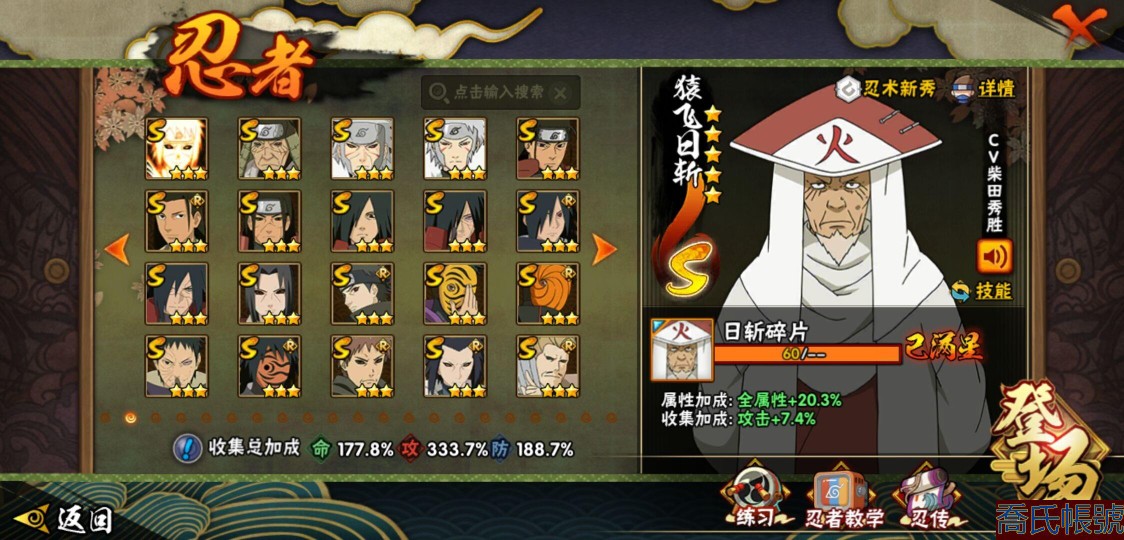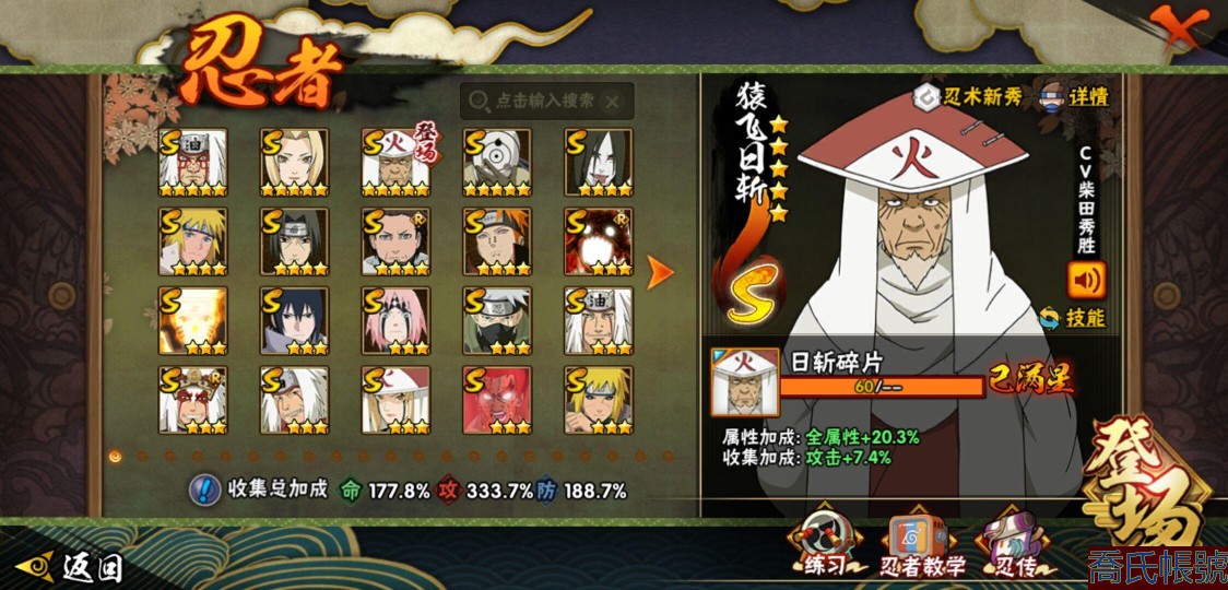 【OBHQTMS496542】戰鬥力:2712W+;段位:影級3階;本服排名:19;戰區排名:未上榜;VIP15級;S忍54個;A忍99個;通靈獸27個;S忍:仙人模式自來也(5星),綱手(5星),猿飛日斬(5星),白面具宇智波斑(5星),大蛇丸(4星),波風水門(4星),須佐能乎宇智波鼬(4星),初代目風影烈鬥(4星),天道佩恩(4星),暴怒第六尾漩渦鳴人,九喇嘛連結漩渦鳴人,永恆萬花筒宇智波佐助,忍界大戰春野櫻,須佐能乎旗木卡卡西,自來也,舞之豪傑自來也,傳說中的三忍自來也,百豪綱手,死門邁特凱,穢土轉生波風水門,九喇嘛連結波風水門,穢土轉生猿飛日斬,穢土轉生千手扉間,千手扉間,千手柱間,木葉創立千手柱間,穢土轉生千手柱間,宇智波斑,穢土轉生宇智波斑,木葉創立宇智波斑,穢土轉生解宇智波斑,穢土轉生宇智波鼬,須佐能乎宇智波止水,神秘面具男,五影會談宇智波斑,忍界大戰宇智波帶土,紅夜之刃神秘面具男,四代目風影羅砂,穢土轉生三代目風影,二代目水影鬼燈幻月,四代目雷影艾,忍界大戰艾,三代目雷影艾,穢土轉生金角銀角,三代目土影大野木,穢土轉生半藏,二代目土影無,忍界大戰大野木,超佩恩天道,穢土轉生長門,仙人模式藥師兜,最終章大筒木舍人,大筒木桃式,大筒木金式;A忍:邁特凱(5星),猿飛阿斯瑪(5星),疾風傳我愛羅(5星),蠍(5星),幹柿鬼鮫(5星),飛段(5星),死司憑血飛段(5星),旗木卡卡西(4星),宇智波止水(3星),奇拉比(3星),忍界大戰土臺(3星),半蛇斗篷藥師兜(3星),初始形態機械鳴人,仙人模式漩渦鳴人,九尾查克拉漩渦鳴人,萬花筒寫輪眼宇智波佐助,須佐能乎宇智波佐助,疾風傳咒印宇智波佐助,俠隱江湖宇智波佐助,宇智波泉奈,百豪春野櫻,忍界大戰秋道丁次,忍界大戰日向寧次,忍界大戰李洛克,忍界大戰天天,最終章日向雛田,幻之真容旗木卡卡西,萬花筒寫輪眼旗木卡卡西,忍界大戰旗木卡卡西,元氣夏日旗木卡卡西,忍界大戰邁特凱,驚門邁特凱,青春爆炸邁特凱,穢土轉生猿飛阿斯瑪,地陸,新春限定宇智波止水,志村團藏,火影繼承人猿飛日斬,三忍之師猿飛日斬,新春限定波風水門,青年波風水門,忍界大戰我愛羅,新春限定我愛羅,忍界大戰勘九郎,近松十人衛千代,五代目水影照美冥,俠隱江湖照美冥,夏日泳裝照美冥,穢土轉生桃地再不斬,桃地再不斬,漂泊武士桃地再不斬,忍界大戰奇拉比,青年艾,俠隱江湖綱手,妖怪奇譚綱手,漂泊武士千手扉間,俠隱江湖藥師兜,不風,不緣,不動,青年長門,漂泊浪客佩恩六道,小南,夏日泳裝小南,漂泊浪客小南,新春限定小南,絕,黑絕,曉創生角都,角都,地怨虞角都,穢土轉生角都,曉大蛇丸,新春限定大蛇丸,緋流琥蠍,百機操演蠍,曉創生蠍,宇智波鼬,新春限定宇智波鼬,夏日限定宇智波鼬,鮫肌融合幹柿鬼鮫,迪達拉,穢土轉生迪達拉,新春限定迪達拉,阿飛,曉創生飛段,暴怒宇智波帶土,漂泊浪客宇智波帶土,加藤斷,俠隱江湖大野木,忍者大戰黃土,火之意志繼承者卑留呼,羈絆神農,猿飛木葉丸,六代目水影長十郎,桃式顯現漩渦博人,五代目雷影達魯伊,四代目土影黑土,夏日限定黑土;通靈獸:忍犬,藍蛇,蛤蟆吉,忍龜,鐮鼬,猿魔,蛞蝓,山椒魚,熊貓,蜃,蛤蟆仙人,鮫鯊,蛤蟆健,烏鴉,,蛤蟆龍,二尾又旅,蛤蟆廣,夢貘,鷹,砂之守鶴,蜘蛛,辛牙,蛞蝓俠隱江湖,蛤蟆吾郎,萬蛇新春限定;時裝:桀驁之刃猿飛阿斯瑪,百戰宇智波鼬須佐能乎,狂野鮫鯊幹柿鬼鮫,鋼鐵之軀邁特凱,蜀面豪傑舞之豪傑自來也,百戰波風水門,百戰佩恩天道,百戰大蛇丸,冷玉豪情綱手俠隱江湖,終焉剎寂宇智波帶土漂泊浪客,仲夏微光宇智波鼬夏日限定,晴浪礁歌黑土夏日限定,太極靈韻日向花火武當宗師,烈土霓裳黑土四代目土影,土之固守大野木三代目土影,憤怒的伊始宇智波帶土暴怒,編織虛實宇智波鼬,龍的傳人李洛克截拳宗師,菁英忍者旗木卡卡西少年,水之妖姬照美冥五代目水影,命定之戰宇智波佐助疾風傳,智勇記者宇智波佐良娜,神使之花小南新春限定,隱藏內心的面具旗木卡卡西暗部,緋櫻綻放春野櫻百豪,血紅辣椒旋渦玖辛奈少女png,血霧怪人幹柿鬼鮫,驚雷掠影達魯伊五代目雷影,可愛睡衣漩渦鳴人,飛瀑流泉長十郎六代目水影,傳說的光芒波風水門,風之守護我愛羅忍界大戰,夏日衝浪旗木卡卡西元氣夏日,剎那的藝術迪達拉,驕陽翠羽照美冥夏日泳裝,紅月映雪宇智波鼬新春限定,雷電之力艾四代目雷影,純白之心白,火之意志綱手百豪,睿勇新星千手扉間少年,熊貓少女天天峨眉宗師;【1117】全328忍者,區裡一組,組織資源多,組織兌換幣多,組織忍者皮膚隨便換,號裡有4w7金幣,加上月卡的總共5w7金幣,可以秒下個高招s,cf號裡也有點配置,可議價。