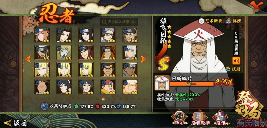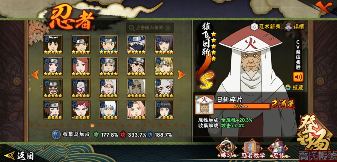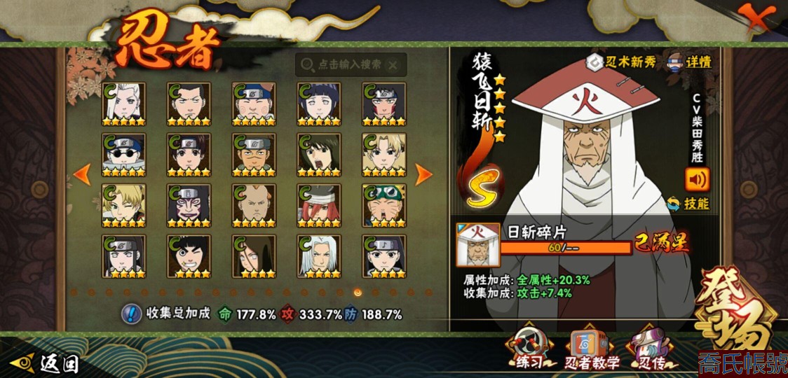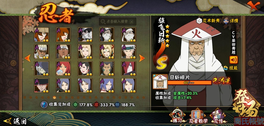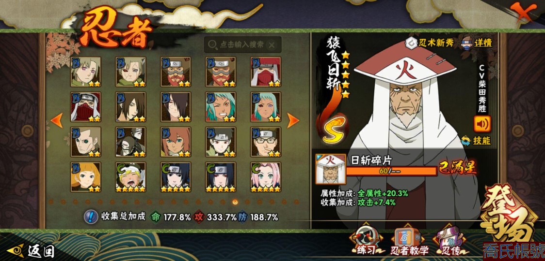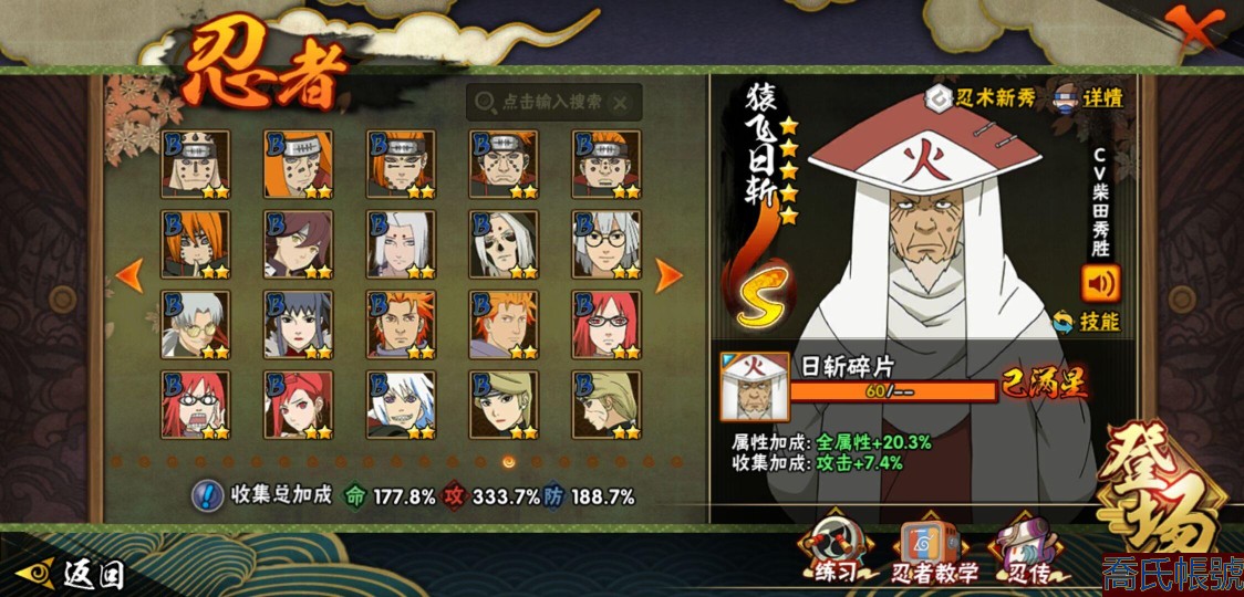 【OBHQTMS496542】戰鬥力:2712W+;段位:影級3階;本服排名:19;戰區排名:未上榜;VIP15級;S忍54個;A忍99個;通靈獸27個;S忍:仙人模式自來也(5星),綱手(5星),猿飛日斬(5星),白面具宇智波斑(5星),大蛇丸(4星),波風水門(4星),須佐能乎宇智波鼬(4星),初代目風影烈鬥(4星),天道佩恩(4星),暴怒第六尾漩渦鳴人,九喇嘛連結漩渦鳴人,永恆萬花筒宇智波佐助,忍界大戰春野櫻,須佐能乎旗木卡卡西,自來也,舞之豪傑自來也,傳說中的三忍自來也,百豪綱手,死門邁特凱,穢土轉生波風水門,九喇嘛連結波風水門,穢土轉生猿飛日斬,穢土轉生千手扉間,千手扉間,千手柱間,木葉創立千手柱間,穢土轉生千手柱間,宇智波斑,穢土轉生宇智波斑,木葉創立宇智波斑,穢土轉生解宇智波斑,穢土轉生宇智波鼬,須佐能乎宇智波止水,神秘面具男,五影會談宇智波斑,忍界大戰宇智波帶土,紅夜之刃神秘面具男,四代目風影羅砂,穢土轉生三代目風影,二代目水影鬼燈幻月,四代目雷影艾,忍界大戰艾,三代目雷影艾,穢土轉生金角銀角,三代目土影大野木,穢土轉生半藏,二代目土影無,忍界大戰大野木,超佩恩天道,穢土轉生長門,仙人模式藥師兜,最終章大筒木舍人,大筒木桃式,大筒木金式;A忍:邁特凱(5星),猿飛阿斯瑪(5星),疾風傳我愛羅(5星),蠍(5星),幹柿鬼鮫(5星),飛段(5星),死司憑血飛段(5星),旗木卡卡西(4星),宇智波止水(3星),奇拉比(3星),忍界大戰土臺(3星),半蛇斗篷藥師兜(3星),初始形態機械鳴人,仙人模式漩渦鳴人,九尾查克拉漩渦鳴人,萬花筒寫輪眼宇智波佐助,須佐能乎宇智波佐助,疾風傳咒印宇智波佐助,俠隱江湖宇智波佐助,宇智波泉奈,百豪春野櫻,忍界大戰秋道丁次,忍界大戰日向寧次,忍界大戰李洛克,忍界大戰天天,最終章日向雛田,幻之真容旗木卡卡西,萬花筒寫輪眼旗木卡卡西,忍界大戰旗木卡卡西,元氣夏日旗木卡卡西,忍界大戰邁特凱,驚門邁特凱,青春爆炸邁特凱,穢土轉生猿飛阿斯瑪,地陸,新春限定宇智波止水,志村團藏,火影繼承人猿飛日斬,三忍之師猿飛日斬,新春限定波風水門,青年波風水門,忍界大戰我愛羅,新春限定我愛羅,忍界大戰勘九郎,近松十人衛千代,五代目水影照美冥,俠隱江湖照美冥,夏日泳裝照美冥,穢土轉生桃地再不斬,桃地再不斬,漂泊武士桃地再不斬,忍界大戰奇拉比,青年艾,俠隱江湖綱手,妖怪奇譚綱手,漂泊武士千手扉間,俠隱江湖藥師兜,不風,不緣,不動,青年長門,漂泊浪客佩恩六道,小南,夏日泳裝小南,漂泊浪客小南,新春限定小南,絕,黑絕,曉創生角都,角都,地怨虞角都,穢土轉生角都,曉大蛇丸,新春限定大蛇丸,緋流琥蠍,百機操演蠍,曉創生蠍,宇智波鼬,新春限定宇智波鼬,夏日限定宇智波鼬,鮫肌融合幹柿鬼鮫,迪達拉,穢土轉生迪達拉,新春限定迪達拉,阿飛,曉創生飛段,暴怒宇智波帶土,漂泊浪客宇智波帶土,加藤斷,俠隱江湖大野木,忍者大戰黃土,火之意志繼承者卑留呼,羈絆神農,猿飛木葉丸,六代目水影長十郎,桃式顯現漩渦博人,五代目雷影達魯伊,四代目土影黑土,夏日限定黑土;通靈獸:忍犬,藍蛇,蛤蟆吉,忍龜,鐮鼬,猿魔,蛞蝓,山椒魚,熊貓,蜃,蛤蟆仙人,鮫鯊,蛤蟆健,烏鴉,,蛤蟆龍,二尾又旅,蛤蟆廣,夢貘,鷹,砂之守鶴,蜘蛛,辛牙,蛞蝓俠隱江湖,蛤蟆吾郎,萬蛇新春限定;時裝:桀驁之刃猿飛阿斯瑪,百戰宇智波鼬須佐能乎,狂野鮫鯊幹柿鬼鮫,鋼鐵之軀邁特凱,蜀面豪傑舞之豪傑自來也,百戰波風水門,百戰佩恩天道,百戰大蛇丸,冷玉豪情綱手俠隱江湖,終焉剎寂宇智波帶土漂泊浪客,仲夏微光宇智波鼬夏日限定,晴浪礁歌黑土夏日限定,太極靈韻日向花火武當宗師,烈土霓裳黑土四代目土影,土之固守大野木三代目土影,憤怒的伊始宇智波帶土暴怒,編織虛實宇智波鼬,龍的傳人李洛克截拳宗師,菁英忍者旗木卡卡西少年,水之妖姬照美冥五代目水影,命定之戰宇智波佐助疾風傳,智勇記者宇智波佐良娜,神使之花小南新春限定,隱藏內心的面具旗木卡卡西暗部,緋櫻綻放春野櫻百豪,血紅辣椒旋渦玖辛奈少女png,血霧怪人幹柿鬼鮫,驚雷掠影達魯伊五代目雷影,可愛睡衣漩渦鳴人,飛瀑流泉長十郎六代目水影,傳說的光芒波風水門,風之守護我愛羅忍界大戰,夏日衝浪旗木卡卡西元氣夏日,剎那的藝術迪達拉,驕陽翠羽照美冥夏日泳裝,紅月映雪宇智波鼬新春限定,雷電之力艾四代目雷影,純白之心白,火之意志綱手百豪,睿勇新星千手扉間少年,熊貓少女天天峨眉宗師;【1117】全328忍者,區裡一組,組織資源多,組織兌換幣多,組織忍者皮膚隨便換,號裡有4w7金幣,加上月卡的總共5w7金幣,可以秒下個高招s,cf號裡也有點配置,可議價。