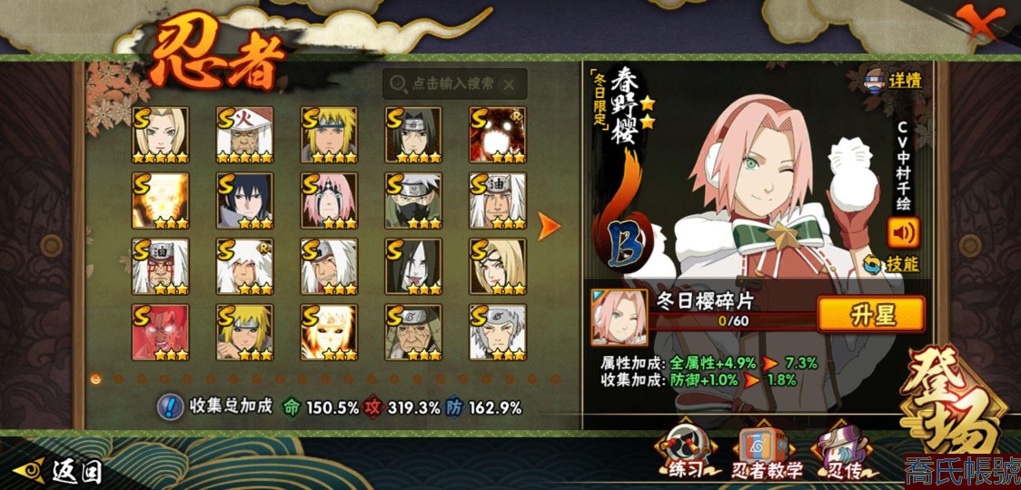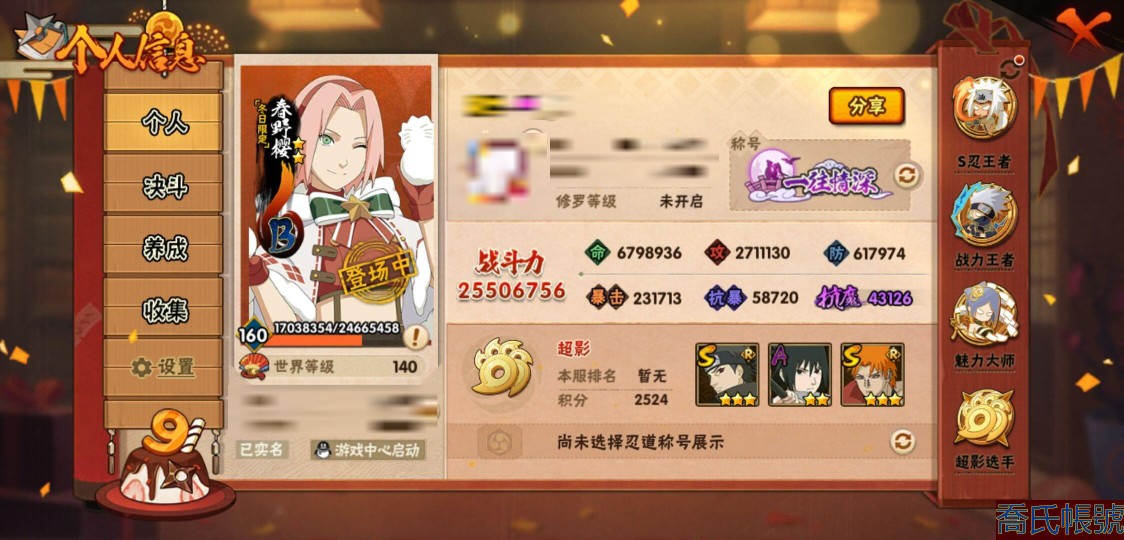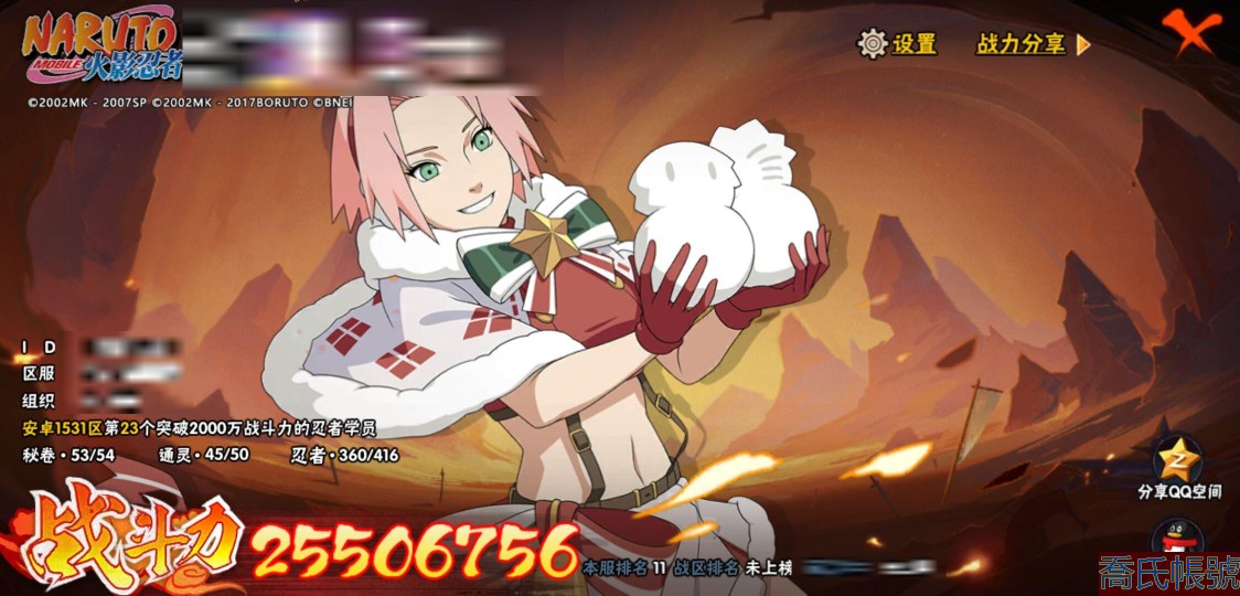 【OBHQTMS423742】戰鬥力:2550W+;段位:超影;本服排名:11;戰區排名:未上榜;VIP14級;S忍52個;A忍88個;通靈獸45個;S忍:綱手(5星),猿飛日斬(5星),波風水門(4星),須佐能乎宇智波鼬(4星),暴怒第六尾漩渦鳴人,九喇嘛連結漩渦鳴人,永恆萬花筒宇智波佐助,忍界大戰春野櫻,須佐能乎旗木卡卡西,自來也,仙人模式自來也,舞之豪傑自來也,傳說中的三忍自來也,大蛇丸,百豪綱手,死門邁特凱,穢土轉生波風水門,九喇嘛連結波風水門,穢土轉生猿飛日斬,千手扉間,穢土轉生千手扉間,千手柱間,穢土轉生千手柱間,木葉創立千手柱間,穢土轉生宇智波斑,宇智波斑,木葉創立宇智波斑,穢土轉生解宇智波斑,穢土轉生宇智波鼬,須佐能乎宇智波止水,神秘面具男,白面具宇智波斑,五影會談宇智波斑,忍界大戰宇智波帶土,紅夜之刃神秘面具男,四代目風影羅砂,初代目風影烈鬥,二代目水影鬼燈幻月,四代目雷影艾,忍界大戰艾,三代目雷影艾,三代目土影大野木,穢土轉生半藏,忍界大戰大野木,二代目土影無,天道佩恩,超佩恩天道,穢土轉生長門,仙人模式藥師兜,最終章大筒木舍人,大筒木桃式,大筒木金式;A忍:邁特凱(5星),猿飛阿斯瑪(5星),蠍(5星),幹柿鬼鮫(5星),死司憑血飛段(5星),疾風傳我愛羅(4星),飛段(4星),忍界大戰土臺(3星),曉大蛇丸(3星),緋流琥蠍(3星),初始形態機械鳴人,忍者之路神秘面具男,仙人模式漩渦鳴人,九尾查克拉漩渦鳴人,萬花筒寫輪眼宇智波佐助,須佐能乎宇智波佐助,疾風傳咒印宇智波佐助,俠隱江湖宇智波佐助,宇智波泉奈,百豪春野櫻,忍界大戰秋道丁次,忍界大戰日向寧次,忍界大戰李洛克,最終章日向雛田,幻之真容旗木卡卡西,旗木卡卡西,萬花筒寫輪眼旗木卡卡西,忍界大戰旗木卡卡西,元氣夏日旗木卡卡西,忍界大戰邁特凱,青春爆炸邁特凱,七夕限定猿飛阿斯瑪,宇智波止水,新春限定宇智波止水,志村團藏,火影繼承人猿飛日斬,新春限定波風水門,青年波風水門,新春限定我愛羅,忍界大戰我愛羅,近松十人衛千代,俠隱江湖照美冥,五代目水影照美冥,夏日泳裝照美冥,漂泊武士桃地再不斬,桃地再不斬,穢土轉生桃地再不斬,奇拉比,忍界大戰奇拉比,青年艾,青年三船,俠隱江湖綱手,妖怪奇譚綱手,漂泊武士千手扉間,半蛇斗篷藥師兜,俠隱江湖藥師兜,不風,不緣,不動,青年長門,漂泊浪客佩恩六道,小南,夏日泳裝小南,漂泊浪客小南,新春限定小南,絕,黑絕,地怨虞角都,穢土轉生角都,新春限定大蛇丸,宇智波鼬,新春限定宇智波鼬,夏日限定宇智波鼬,迪達拉,穢土轉生迪達拉,新春限定迪達拉,惡靈之影飛段,暴怒宇智波帶土,漂泊浪客宇智波帶土,俠隱江湖大野木,火之意志繼承者卑留呼,羈絆神農,猿飛木葉丸,六代目水影長十郎,桃式顯現漩渦博人,五代目雷影達魯伊,四代目土影黑土,夏日限定黑土;通靈獸:忍犬,藍蛇,蛤蟆吉,忍龜,鐮鼬,猿魔,山椒魚,蜃,蛞蝓,蛤蟆仙人,鮫鯊,蛤蟆健,烏鴉,砂之守鶴,熊貓,蛤蟆龍,怒鬼無臂,蛤蟆廣,怒鬼爪,夢貘,鷹,萬蛇,,怒鬼,辛牙,蜘蛛,變色龍,獄閻王,鵺,六尾犀犬,二尾又旅,守鶴,蛤蟆文太,公牛,祥瑞金烏,烏鴉夏日限定,元氣忍犬,五尾穆王,巨型三足鳥,蛞蝓俠隱江湖,三尾磯撫,四尾孫悟空;時裝:桀驁之刃猿飛阿斯瑪,百戰宇智波鼬須佐能乎,蜀面豪傑舞之豪傑自來也,百戰波風水門,百戰佩恩天道,百戰大蛇丸,晴浪礁歌黑土夏日限定,太極靈韻日向花火武當宗師,烈土霓裳黑土四代目土影,土之固守大野木三代目土影,編織虛實宇智波鼬,龍的傳人李洛克截拳宗師,菁英忍者旗木卡卡西少年,命定之戰宇智波佐助疾風傳,智勇記者宇智波佐良娜,緋櫻綻放春野櫻百豪,血紅辣椒旋渦玖辛奈少女png,血霧怪人幹柿鬼鮫,驚雷掠影達魯伊五代目雷影,可愛睡衣漩渦鳴人,飛瀑流泉長十郎六代目水影,傳說的光芒波風水門,風之守護我愛羅忍界大戰,夏日衝浪旗木卡卡西元氣夏日,驕陽翠羽照美冥夏日泳裝,睿勇新星千手扉間少年,熊貓少女天天峨眉宗師;【1531】全s 全限時點卷a兩個298一個328