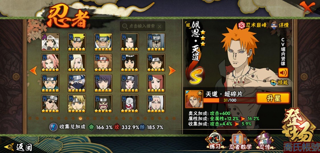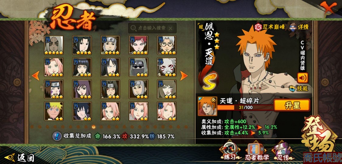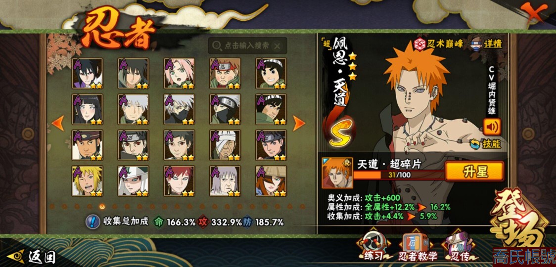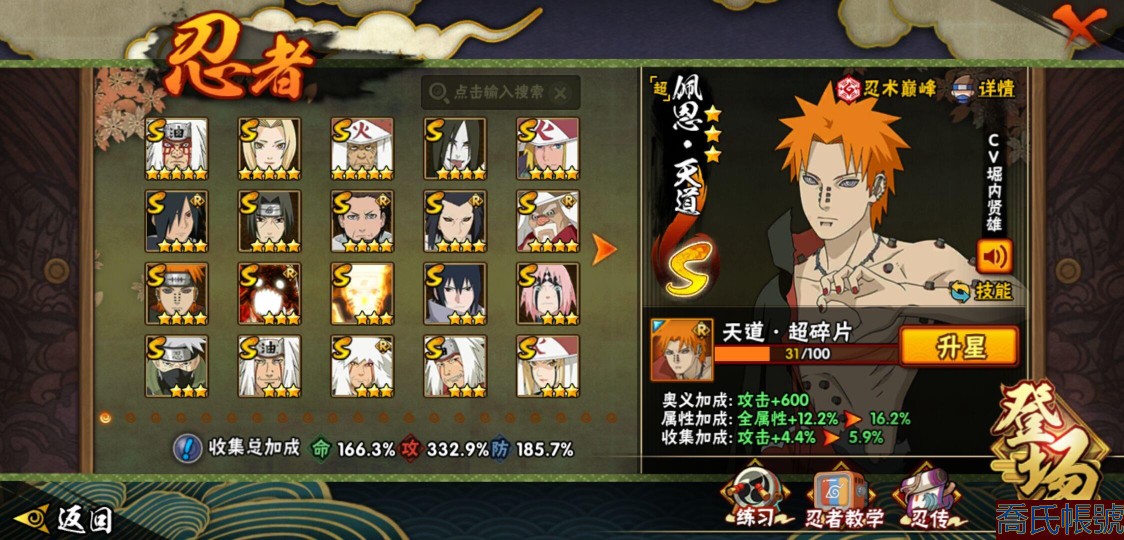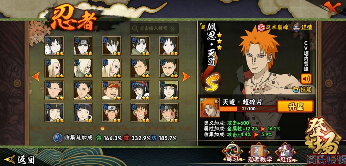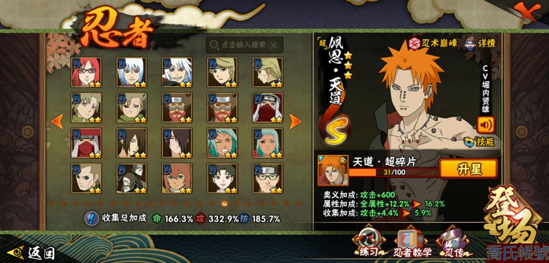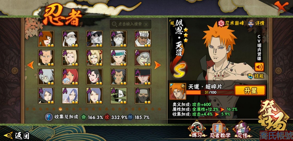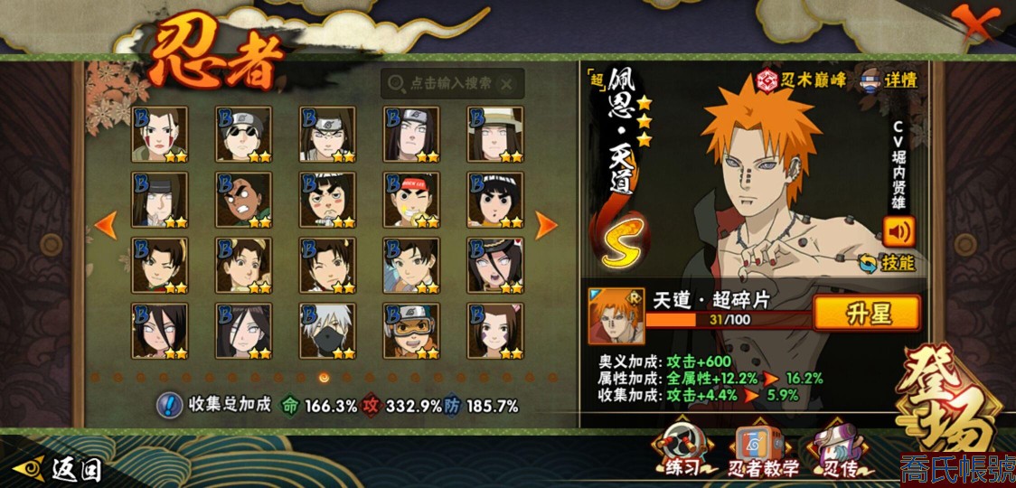 【OBHQTMS522042】戰鬥力:3010W+;段位:上忍2階;本服排名:3;戰區排名:30;VIP15級;S忍54個;A忍87個;通靈獸28個;S忍:仙人模式自來也(5星),綱手(5星),猿飛日斬(5星),大蛇丸(4星),波風水門(4星),木葉創立宇智波斑(4星),須佐能乎宇智波鼬(4星),初代目風影烈鬥(4星),穢土轉生三代目風影(4星),三代目土影大野木(4星),天道佩恩(4星),暴怒第六尾漩渦鳴人,九喇嘛連結漩渦鳴人,永恆萬花筒宇智波佐助,忍界大戰春野櫻,須佐能乎旗木卡卡西,自來也,舞之豪傑自來也,傳說中的三忍自來也,百豪綱手,死門邁特凱,穢土轉生波風水門,九喇嘛連結波風水門,穢土轉生猿飛日斬,千手扉間,穢土轉生千手扉間,千手柱間,穢土轉生千手柱間,木葉創立千手柱間,宇智波斑,穢土轉生宇智波斑,穢土轉生解宇智波斑,穢土轉生宇智波鼬,須佐能乎宇智波止水,神秘面具男,白面具宇智波斑,五影會談宇智波斑,忍界大戰宇智波帶土,紅夜之刃神秘面具男,四代目風影羅砂,二代目水影鬼燈幻月,四代目雷影艾,忍界大戰艾,三代目雷影艾,穢土轉生金角銀角,穢土轉生半藏,二代目土影無,忍界大戰大野木,超佩恩天道,穢土轉生長門,仙人模式藥師兜,最終章大筒木舍人,大筒木桃式,大筒木金式;A忍:邁特凱(5星),猿飛阿斯瑪(5星),蠍(5星),幹柿鬼鮫(5星),死司憑血飛段(5星),疾風傳我愛羅(4星),飛段(4星),仙人模式漩渦鳴人(3星),忍界大戰日向寧次(3星),旗木卡卡西(3星),青年波風水門(3星),五代目水影照美冥(3星),忍界大戰奇拉比(3星),青年艾(3星),忍界大戰土臺(3星),青年長門(3星),宇智波鼬(3星),迪達拉(3星),穢土轉生迪達拉(3星),猿飛木葉丸(3星),初始形態機械鳴人,忍者之路神秘面具男,九尾查克拉漩渦鳴人(3星),萬花筒寫輪眼宇智波佐助,須佐能乎宇智波佐助,疾風傳咒印宇智波佐助,俠隱江湖宇智波佐助,宇智波泉奈,百豪春野櫻,忍界大戰秋道丁次,忍界大戰李洛克,最終章日向雛田,幻之真容旗木卡卡西,萬花筒寫輪眼旗木卡卡西,忍界大戰旗木卡卡西,青春爆炸邁特凱,七夕限定猿飛阿斯瑪,宇智波止水,新春限定宇智波止水,志村團藏,火影繼承人猿飛日斬,新春限定波風水門,忍界大戰我愛羅,新春限定我愛羅,近松十人衛千代,俠隱江湖照美冥,夏日泳裝照美冥,漂泊武士桃地再不斬,穢土轉生桃地再不斬,桃地再不斬,奇拉比,青年三船,俠隱江湖綱手,妖怪奇譚綱手,漂泊武士千手扉間,半蛇斗篷藥師兜,俠隱江湖藥師兜,不風,不緣,不動,漂泊浪客佩恩六道,小南,漂泊浪客小南,新春限定小南,絕,曉創生角都,角都,地怨虞角都,穢土轉生角都,曉大蛇丸,新春限定大蛇丸,緋流琥蠍,新春限定宇智波鼬,夏日限定宇智波鼬,新春限定迪達拉,阿飛,惡靈之影飛段,暴怒宇智波帶土,漂泊浪客宇智波帶土,加藤斷,俠隱江湖大野木,火之意志繼承者卑留呼,羈絆神農,桃式顯現漩渦博人,五代目雷影達魯伊,六代目水影長十郎,四代目土影黑土;通靈獸:忍犬,藍蛇,蛤蟆吉,忍龜,蛞蝓,鐮鼬,猿魔,山椒魚,蜃,蛤蟆仙人,鮫鯊,蛤蟆健,烏鴉,熊貓,蛤蟆龍,蛤蟆廣,砂之守鶴,二尾又旅,夢貘,鷹,蜘蛛,九尾九喇嘛,守鶴,萬蛇,,辛牙,蛞蝓俠隱江湖;時裝:狂野鮫鯊幹柿鬼鮫,蜀面豪傑舞之豪傑自來也,百戰佩恩天道,百戰大蛇丸,桀驁之刃猿飛阿斯瑪,鋼鐵之軀邁特凱,百戰宇智波鼬須佐能乎,百戰波風水門,冷玉豪情綱手俠隱江湖,詭刃寒芒藥師兜俠隱江湖,龍吟浪客千手扉間漂泊武士,太極靈韻日向花火武當宗師,滄瀾狂侍佩恩·六道漂泊浪客,雷電之力艾四代目雷影,飛瀑流泉長十郎六代目水影,智勇記者宇智波佐良娜,傳說的光芒波風水門,風之守護我愛羅忍界大戰,純白之心白,菁英忍者旗木卡卡西少年,水之妖姬照美冥五代目水影,編織虛實宇智波鼬,可愛睡衣漩渦鳴人,龍的傳人李洛克截拳宗師,緋櫻綻放春野櫻百豪,血霧怪人幹柿鬼鮫,血紅辣椒旋渦玖辛奈少女png,剎那的藝術迪達拉,命定之戰宇智波佐助疾風傳,土之固守大野木三代目土影,熊貓少女天天峨眉宗師,烈土霓裳黑土四代目土影,火之意志綱手百豪,神使之花小南新春限定,初代目火影千手柱間,憤怒的伊始宇智波帶土暴怒,風靈素錦猿飛未來,驚雷掠影達魯伊五代目雷影,隱藏內心的面具旗木卡卡西暗部,睿勇新星千手扉間少年,驕陽翠羽照美冥夏日泳裝;【1635】v15 本服榜三 全S忍者 一月高招s可秒