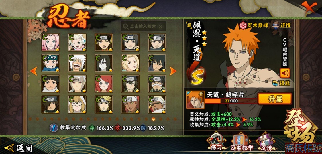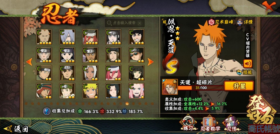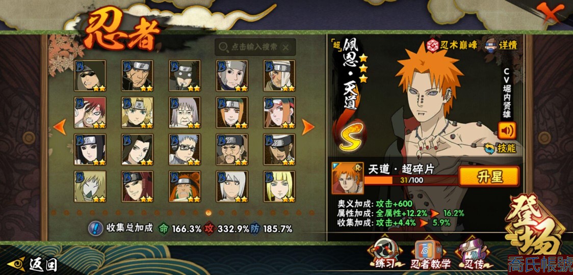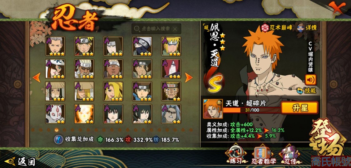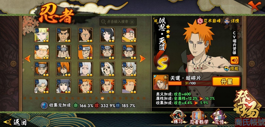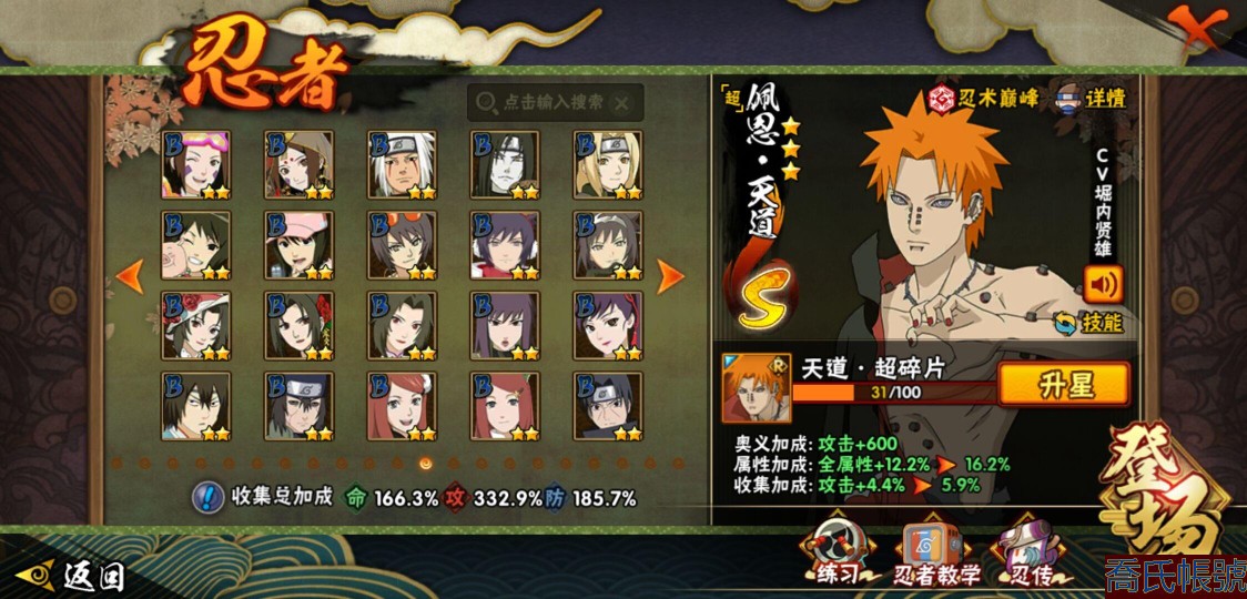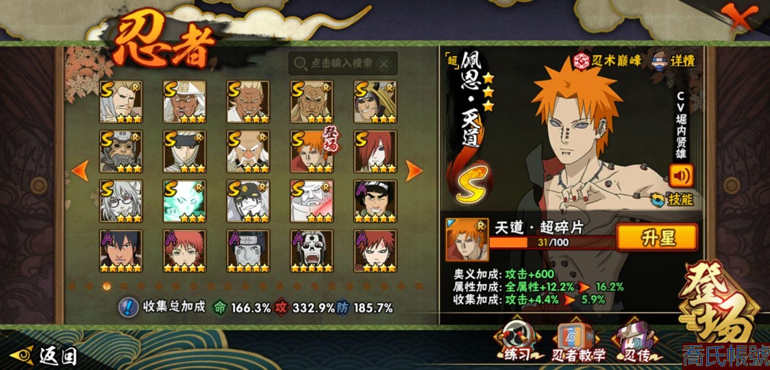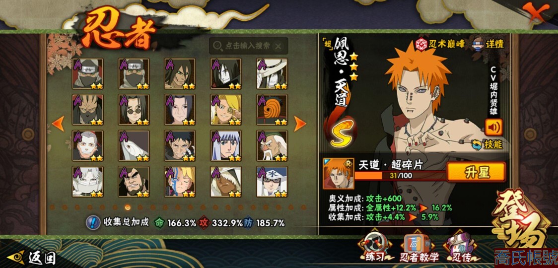 【OBHQTMS522042】戰鬥力:3010W+;段位:上忍2階;本服排名:3;戰區排名:30;VIP15級;S忍54個;A忍87個;通靈獸28個;S忍:仙人模式自來也(5星),綱手(5星),猿飛日斬(5星),大蛇丸(4星),波風水門(4星),木葉創立宇智波斑(4星),須佐能乎宇智波鼬(4星),初代目風影烈鬥(4星),穢土轉生三代目風影(4星),三代目土影大野木(4星),天道佩恩(4星),暴怒第六尾漩渦鳴人,九喇嘛連結漩渦鳴人,永恆萬花筒宇智波佐助,忍界大戰春野櫻,須佐能乎旗木卡卡西,自來也,舞之豪傑自來也,傳說中的三忍自來也,百豪綱手,死門邁特凱,穢土轉生波風水門,九喇嘛連結波風水門,穢土轉生猿飛日斬,千手扉間,穢土轉生千手扉間,千手柱間,穢土轉生千手柱間,木葉創立千手柱間,宇智波斑,穢土轉生宇智波斑,穢土轉生解宇智波斑,穢土轉生宇智波鼬,須佐能乎宇智波止水,神秘面具男,白面具宇智波斑,五影會談宇智波斑,忍界大戰宇智波帶土,紅夜之刃神秘面具男,四代目風影羅砂,二代目水影鬼燈幻月,四代目雷影艾,忍界大戰艾,三代目雷影艾,穢土轉生金角銀角,穢土轉生半藏,二代目土影無,忍界大戰大野木,超佩恩天道,穢土轉生長門,仙人模式藥師兜,最終章大筒木舍人,大筒木桃式,大筒木金式;A忍:邁特凱(5星),猿飛阿斯瑪(5星),蠍(5星),幹柿鬼鮫(5星),死司憑血飛段(5星),疾風傳我愛羅(4星),飛段(4星),仙人模式漩渦鳴人(3星),忍界大戰日向寧次(3星),旗木卡卡西(3星),青年波風水門(3星),五代目水影照美冥(3星),忍界大戰奇拉比(3星),青年艾(3星),忍界大戰土臺(3星),青年長門(3星),宇智波鼬(3星),迪達拉(3星),穢土轉生迪達拉(3星),猿飛木葉丸(3星),初始形態機械鳴人,忍者之路神秘面具男,九尾查克拉漩渦鳴人(3星),萬花筒寫輪眼宇智波佐助,須佐能乎宇智波佐助,疾風傳咒印宇智波佐助,俠隱江湖宇智波佐助,宇智波泉奈,百豪春野櫻,忍界大戰秋道丁次,忍界大戰李洛克,最終章日向雛田,幻之真容旗木卡卡西,萬花筒寫輪眼旗木卡卡西,忍界大戰旗木卡卡西,青春爆炸邁特凱,七夕限定猿飛阿斯瑪,宇智波止水,新春限定宇智波止水,志村團藏,火影繼承人猿飛日斬,新春限定波風水門,忍界大戰我愛羅,新春限定我愛羅,近松十人衛千代,俠隱江湖照美冥,夏日泳裝照美冥,漂泊武士桃地再不斬,穢土轉生桃地再不斬,桃地再不斬,奇拉比,青年三船,俠隱江湖綱手,妖怪奇譚綱手,漂泊武士千手扉間,半蛇斗篷藥師兜,俠隱江湖藥師兜,不風,不緣,不動,漂泊浪客佩恩六道,小南,漂泊浪客小南,新春限定小南,絕,曉創生角都,角都,地怨虞角都,穢土轉生角都,曉大蛇丸,新春限定大蛇丸,緋流琥蠍,新春限定宇智波鼬,夏日限定宇智波鼬,新春限定迪達拉,阿飛,惡靈之影飛段,暴怒宇智波帶土,漂泊浪客宇智波帶土,加藤斷,俠隱江湖大野木,火之意志繼承者卑留呼,羈絆神農,桃式顯現漩渦博人,五代目雷影達魯伊,六代目水影長十郎,四代目土影黑土;通靈獸:忍犬,藍蛇,蛤蟆吉,忍龜,蛞蝓,鐮鼬,猿魔,山椒魚,蜃,蛤蟆仙人,鮫鯊,蛤蟆健,烏鴉,熊貓,蛤蟆龍,蛤蟆廣,砂之守鶴,二尾又旅,夢貘,鷹,蜘蛛,九尾九喇嘛,守鶴,萬蛇,,辛牙,蛞蝓俠隱江湖;時裝:狂野鮫鯊幹柿鬼鮫,蜀面豪傑舞之豪傑自來也,百戰佩恩天道,百戰大蛇丸,桀驁之刃猿飛阿斯瑪,鋼鐵之軀邁特凱,百戰宇智波鼬須佐能乎,百戰波風水門,冷玉豪情綱手俠隱江湖,詭刃寒芒藥師兜俠隱江湖,龍吟浪客千手扉間漂泊武士,太極靈韻日向花火武當宗師,滄瀾狂侍佩恩·六道漂泊浪客,雷電之力艾四代目雷影,飛瀑流泉長十郎六代目水影,智勇記者宇智波佐良娜,傳說的光芒波風水門,風之守護我愛羅忍界大戰,純白之心白,菁英忍者旗木卡卡西少年,水之妖姬照美冥五代目水影,編織虛實宇智波鼬,可愛睡衣漩渦鳴人,龍的傳人李洛克截拳宗師,緋櫻綻放春野櫻百豪,血霧怪人幹柿鬼鮫,血紅辣椒旋渦玖辛奈少女png,剎那的藝術迪達拉,命定之戰宇智波佐助疾風傳,土之固守大野木三代目土影,熊貓少女天天峨眉宗師,烈土霓裳黑土四代目土影,火之意志綱手百豪,神使之花小南新春限定,初代目火影千手柱間,憤怒的伊始宇智波帶土暴怒,風靈素錦猿飛未來,驚雷掠影達魯伊五代目雷影,隱藏內心的面具旗木卡卡西暗部,睿勇新星千手扉間少年,驕陽翠羽照美冥夏日泳裝;【1635】v15 本服榜三 全S忍者 一月高招s可秒