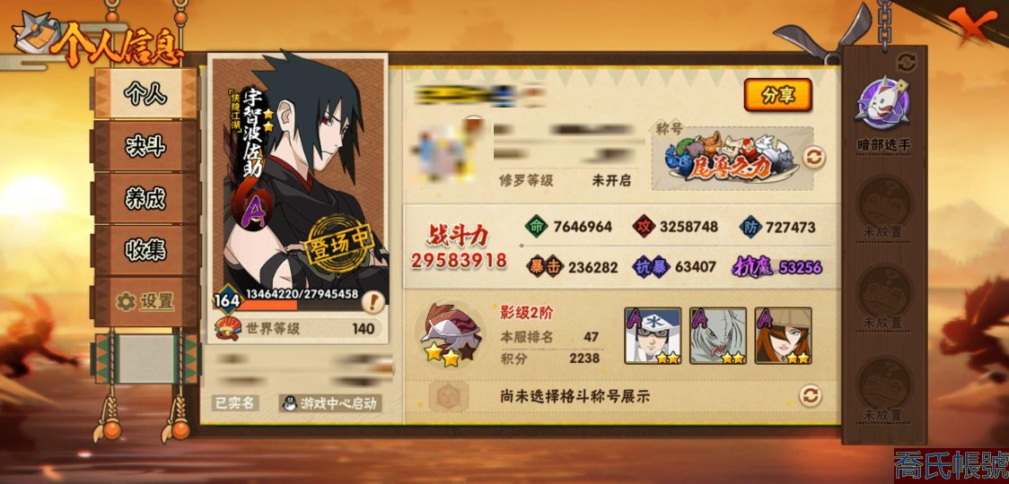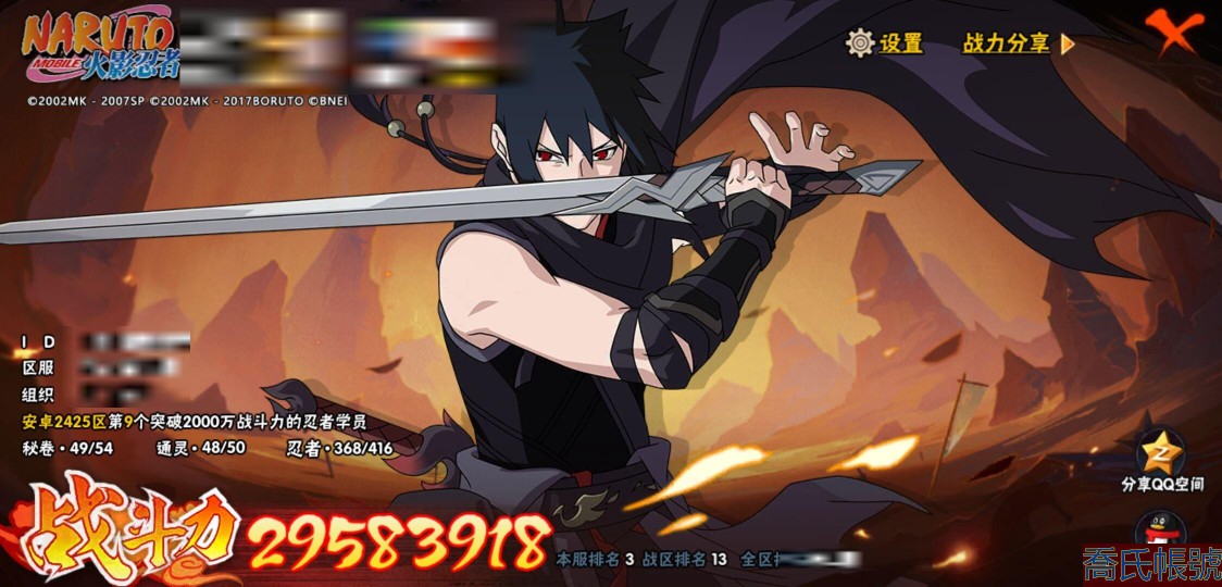 【OBHQTMS028242】戰鬥力:2958W+;段位:影級2階;本服排名:3;戰區排名:13 ;VIP15級;S忍50個;A忍89個;通靈獸48個;S忍:仙人模式自來也(5星),綱手(5星),猿飛日斬(5星),大蛇丸(4星),須佐能乎宇智波鼬(4星),初代目風影烈鬥(4星),暴怒第六尾漩渦鳴人,九喇嘛連結漩渦鳴人,永恆萬花筒宇智波佐助,忍界大戰春野櫻,須佐能乎旗木卡卡西,自來也,舞之豪傑自來也,傳說中的三忍自來也,死門邁特凱,波風水門,穢土轉生波風水門,九喇嘛連結波風水門,穢土轉生猿飛日斬,千手扉間,穢土轉生千手扉間,千手柱間,木葉創立千手柱間,穢土轉生千手柱間,宇智波斑,木葉創立宇智波斑,穢土轉生解宇智波斑,穢土轉生宇智波鼬,須佐能乎宇智波止水,神秘面具男,白面具宇智波斑,五影會談宇智波斑,忍界大戰宇智波帶土,紅夜之刃神秘面具男,四代目風影羅砂,穢土轉生三代目風影,二代目水影鬼燈幻月,四代目雷影艾,忍界大戰艾,三代目雷影艾,三代目土影大野木,忍界大戰大野木,二代目土影無,穢土轉生半藏,天道佩恩,超佩恩天道,穢土轉生長門,最終章大筒木舍人,大筒木桃式,大筒木金式;A忍:邁特凱(5星),猿飛阿斯瑪(5星),蠍(5星),幹柿鬼鮫(5星),死司憑血飛段(5星),疾風傳我愛羅(4星),飛段(4星),旗木卡卡西(3星),忍界大戰土臺(3星),迪達拉(3星),初始形態機械鳴人,忍者之路神秘面具男,仙人模式漩渦鳴人,九尾查克拉漩渦鳴人,萬花筒寫輪眼宇智波佐助,須佐能乎宇智波佐助,疾風傳咒印宇智波佐助,俠隱江湖宇智波佐助,宇智波泉奈,百豪春野櫻,忍界大戰秋道丁次,忍界大戰日向寧次,忍界大戰李洛克,忍界大戰天天,最終章日向雛田,幻之真容旗木卡卡西,萬花筒寫輪眼旗木卡卡西,忍界大戰旗木卡卡西,元氣夏日旗木卡卡西,驚門邁特凱,忍界大戰邁特凱,青春爆炸邁特凱,穢土轉生猿飛阿斯瑪,七夕限定猿飛阿斯瑪,宇智波止水,新春限定宇智波止水,三忍之師猿飛日斬,新春限定波風水門,青年波風水門,忍界大戰我愛羅,新春限定我愛羅,近松十人衛千代,俠隱江湖照美冥,五代目水影照美冥,夏日泳裝照美冥,穢土轉生桃地再不斬,漂泊武士桃地再不斬,奇拉比,忍界大戰奇拉比,青年艾,青年三船,俠隱江湖綱手,妖怪奇譚綱手,漂泊武士千手扉間,俠隱江湖藥師兜,不風,不緣,不動,青年長門,漂泊浪客佩恩六道,小南,夏日泳裝小南,新春限定小南,漂泊浪客小南,黑絕,穢土轉生角都,新春限定大蛇丸,曉大蛇丸,緋流琥蠍,百機操演蠍,曉創生蠍,宇智波鼬,新春限定宇智波鼬,夏日限定宇智波鼬,鮫肌融合幹柿鬼鮫,新春限定迪達拉,惡靈之影飛段,曉創生飛段,暴怒宇智波帶土,漂泊浪客宇智波帶土,俠隱江湖大野木,忍者大戰黃土,火之意志繼承者卑留呼,羈絆神農,桃式顯現漩渦博人,六代目水影長十郎,五代目雷影達魯伊,四代目土影黑土,夏日限定黑土;通靈獸:忍犬,藍蛇,蛤蟆吉,砂之守鶴,熊貓,忍龜,蛞蝓,鐮鼬,山椒魚,猿魔,蜃,蛤蟆仙人,鮫鯊,二尾又旅,怒鬼,蛤蟆健,祥瑞金烏,烏鴉,,四尾孫悟空,巨型三足鳥,蛤蟆文太,一尾守鶴,蛤蟆龍,元氣忍犬,鵺,萬蛇,蛤蟆廣,怒鬼無臂,三尾磯撫,夢貘,九尾九喇嘛,怒鬼爪,鷹,公牛,蛞蝓俠隱江湖,變色龍,蜘蛛,六尾犀犬,五尾穆王,守鶴,三頭犬,烏鴉夏日限定,辛牙,獄閻王;時裝:桀驁之刃猿飛阿斯瑪,百戰宇智波鼬須佐能乎,百戰波風水門,百戰佩恩天道,蜀面豪傑舞之豪傑自來也,鋼鐵之軀邁特凱,百戰大蛇丸,狂野鮫鯊幹柿鬼鮫,燼影絕蹤宇智波佐助俠隱江湖,太極靈韻日向花火武當宗師,冷玉豪情綱手俠隱江湖,終焉剎寂宇智波帶土漂泊浪客,龍吟浪客千手扉間漂泊武士,斑之附身神秘面具男忍者之路,土之固守大野木三代目土影,憤怒的伊始宇智波帶土暴怒,菁英忍者旗木卡卡西少年,編織虛實宇智波鼬,傳說的光芒波風水門,風之守護我愛羅忍界大戰,水之妖姬照美冥五代目水影,萬炎焚空迪達拉新春限定,命定之戰宇智波佐助疾風傳,剎那的藝術迪達拉,熊貓少女天天峨眉宗師,可愛睡衣漩渦鳴人,龍的傳人李洛克截拳宗師,流沙騰龍我愛羅新春限定,烈土霓裳黑土四代目土影,緋櫻綻放春野櫻百豪,血紅辣椒旋渦玖辛奈少女png,血霧怪人幹柿鬼鮫,烈火華服宇智波止水新春限定,驚雷掠影達魯伊五代目雷影,驕陽翠羽照美冥夏日泳裝,紅月映雪宇智波鼬新春限定,神使之花小南新春限定,千雪霜華照美冥俠隱江湖,風靈素錦猿飛未來,飛瀑流泉長十郎六代目水影,夏日衝浪旗木卡卡西元氣夏日,雷電之力艾四代目雷影,睿勇新星千手扉間少年,智勇記者宇智波佐良娜;【2425】博聞錄已買,忍法帖3個198,尾獸之力稱號,40多個氪金A,還有2000限時點券,充值5w,高榜排名,可