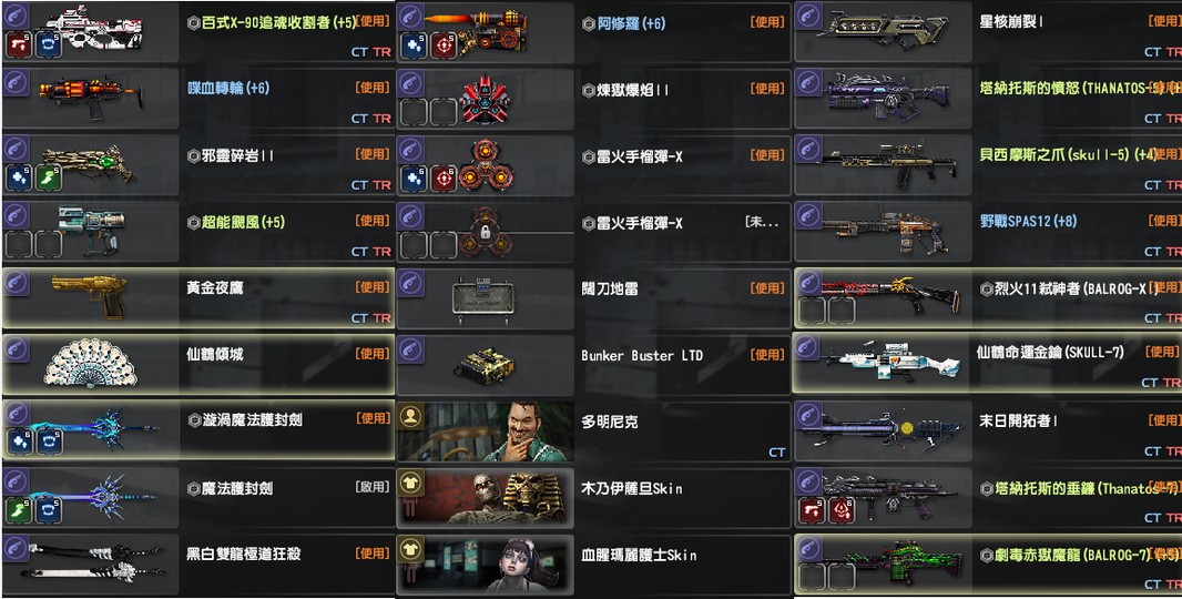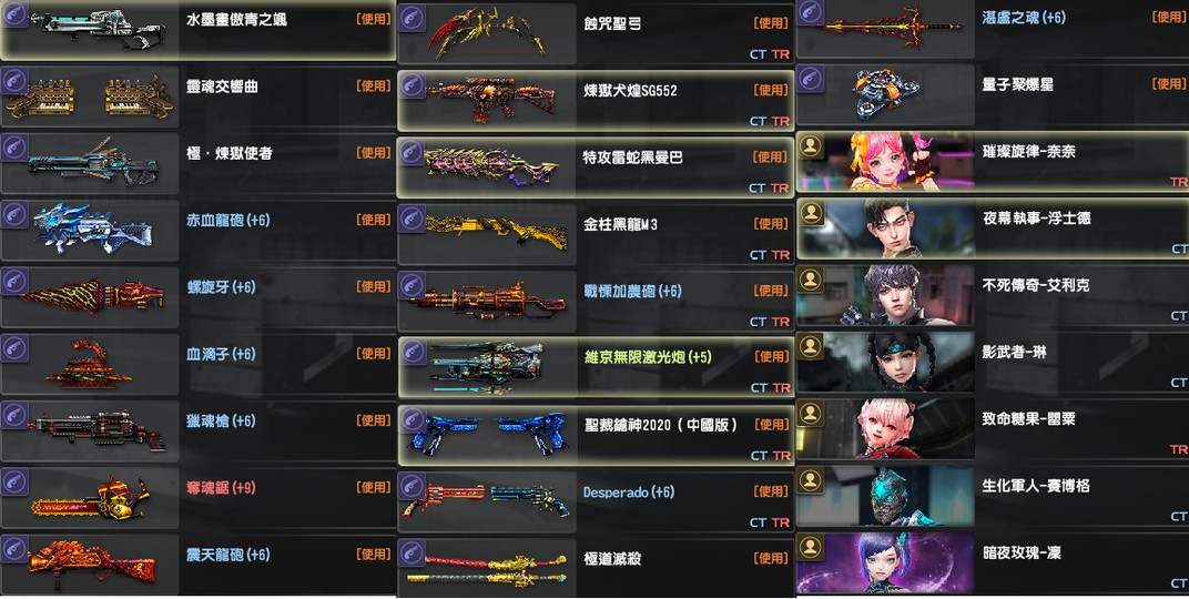夜幕執事-浮士德、璀璨旋律-奈奈、打殭強化槍枝、白金之星、金旋風、原版+黑閃電怒