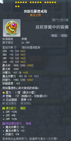 【法師飾品】33%-36%智力 培羅德飾品整套 大魔 強力的魔性戒指
