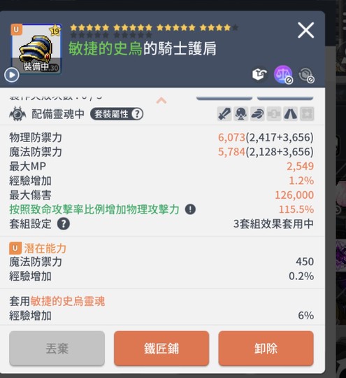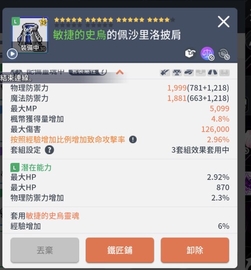 防具大多是經驗裝