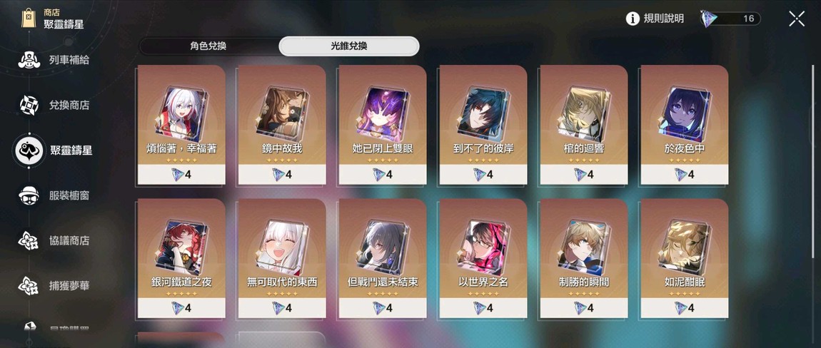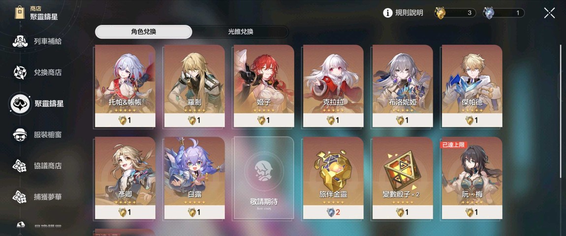【男、70等、27金角、38金專】白厄6+5、黃泉6+5、鏡流6+5、刃6+5、昔漣6+1可直通絕境王棋 價可議