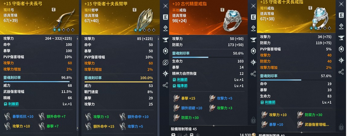 高練度非水裝等281X弓星 攻擊力破4000 3件紅裝