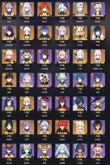 【女、58等、24金角、9金武】3萬原石 21杜林 22火神 20奶奶 20希諾寧 41水神 11龍王 11夜蘭