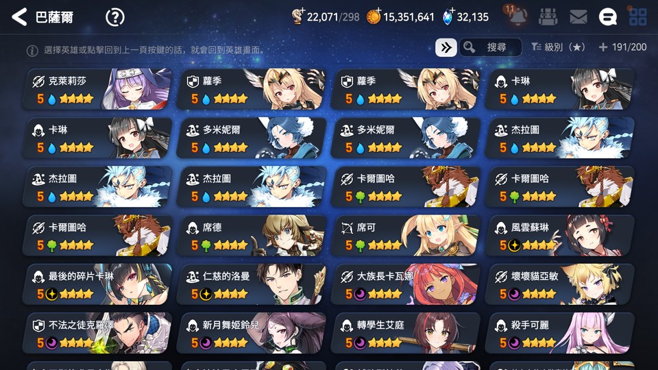 ▶適合新手、中手、小號,有完美開局多隻TOP光暗五星,不是資源玩爛的帳號,培養都往正確方向,多書籤跟天空石讓接下來抽合作角色都不是問題