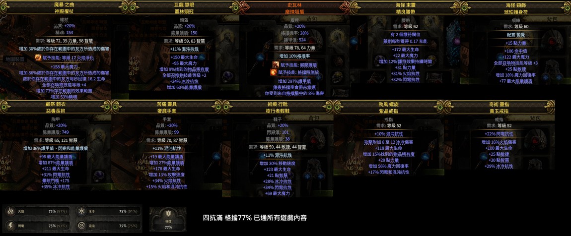 目前血量:2400+ ES:3200+ 魔力:1200+