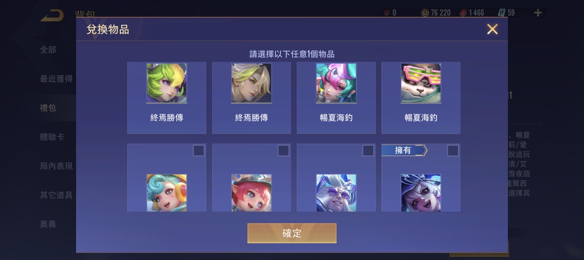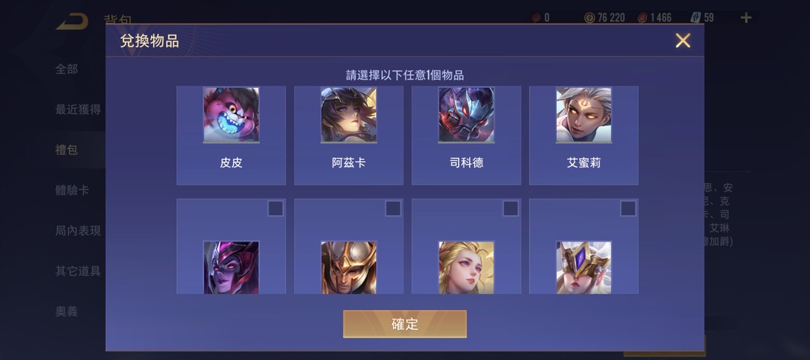 【金幣號】百勝 時空水晶*1 蘭鐸花蜜 伊格狂厄 洛倫西索 造型選擇卡*7 英雄選擇卡*1