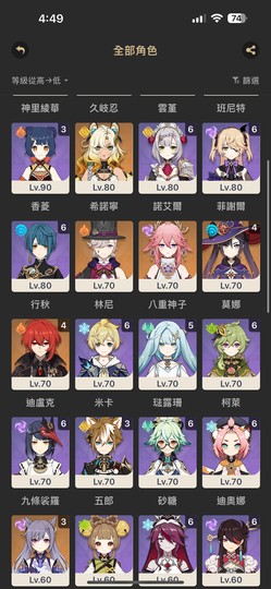 可玩配對眾多 許多角色都有命座 雷神 萬葉 草神 Skk 等等 以及有滿命的神里綾華以及申鶴 詳情請看圖