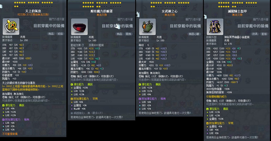 【小資盜賊裝備】1/22出清 22星神秘.永恆盜賊裝.%幸滅龍天上漆黑眼罩苦痛頂培