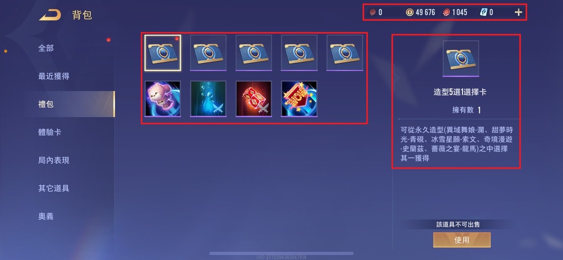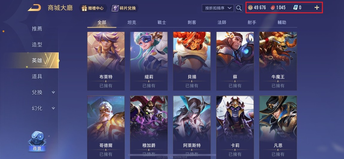 金幣:49676 、寶石:1045 、奧義碎片:14萬。