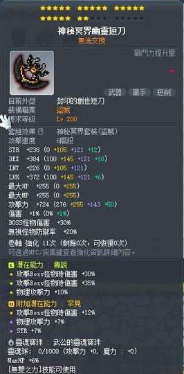 武器主職用潛:65%BOSS10%物攻(職業主流主潛能)