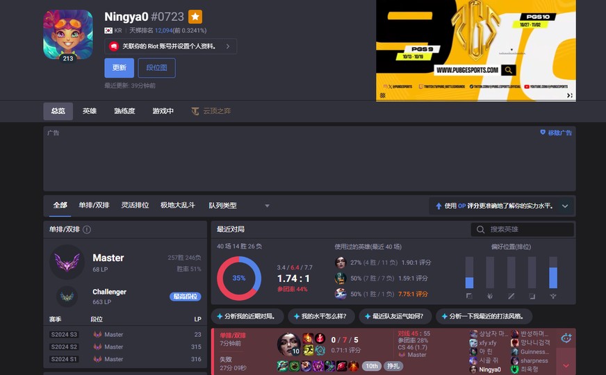 【210等、大師、150英雄、84造型】韓服這賽季最高菁英663分 沒打維護掉鑽石2 目前打到大師 隱藏分超高