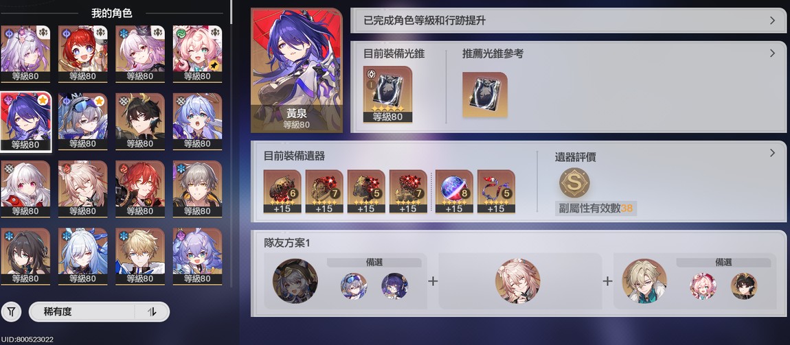 【男、70等、42金角、13金專】記憶戰艦 遐蝶6+1 風堇1+1 長夜1+1 緹寶1+0 黃泉2+1