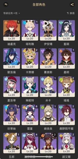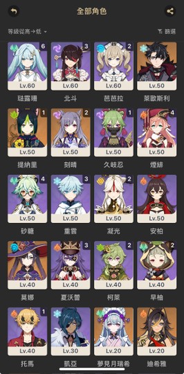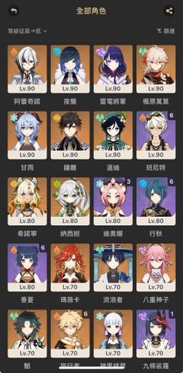【男、56等、20金角、2金武】萊歐/僕人/火神/草神/雷神/溫迪/鍾離/希諾寧/魈/甘雨/夜蘭/流浪者/八重等