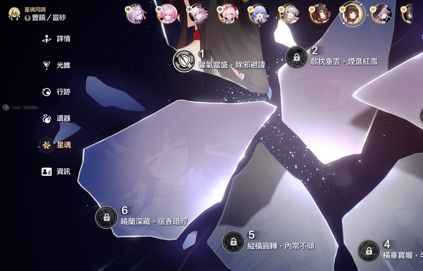 瑕蝶0+1 昔漣2+1 長夜月 2+1 風堇 1+1