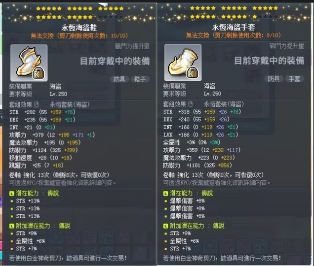 【頂%力海盜退谷】頂%六排力永恆海盜手套/鞋子/披風/肩膀/海盜褲/海盜大衣/海盜帽/26星
