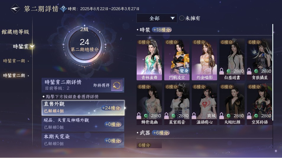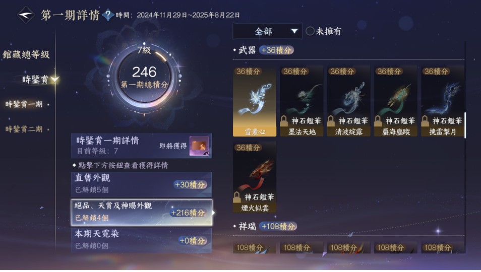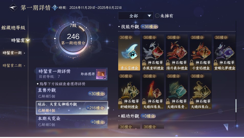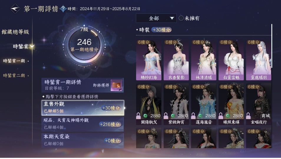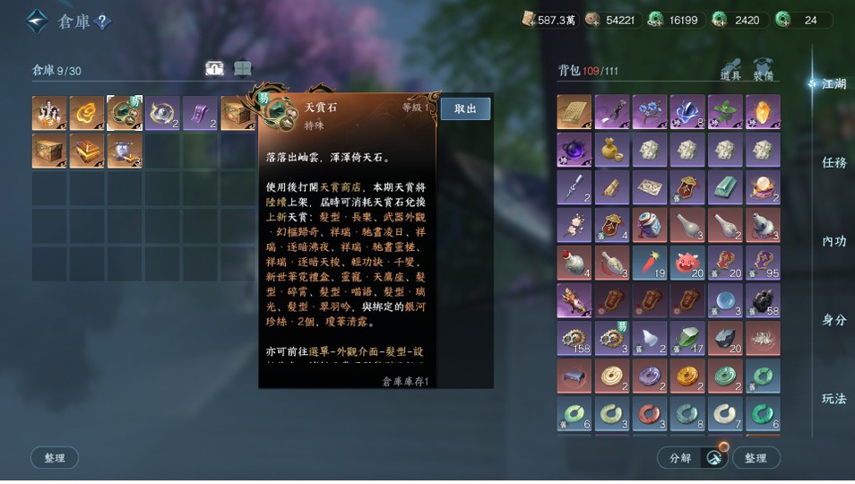 【69等、日月如壁、女、素問】外觀素問(非進度號)/1可交易天賞/6已用天賞/把酒稱號/久沒登入贈額歸零