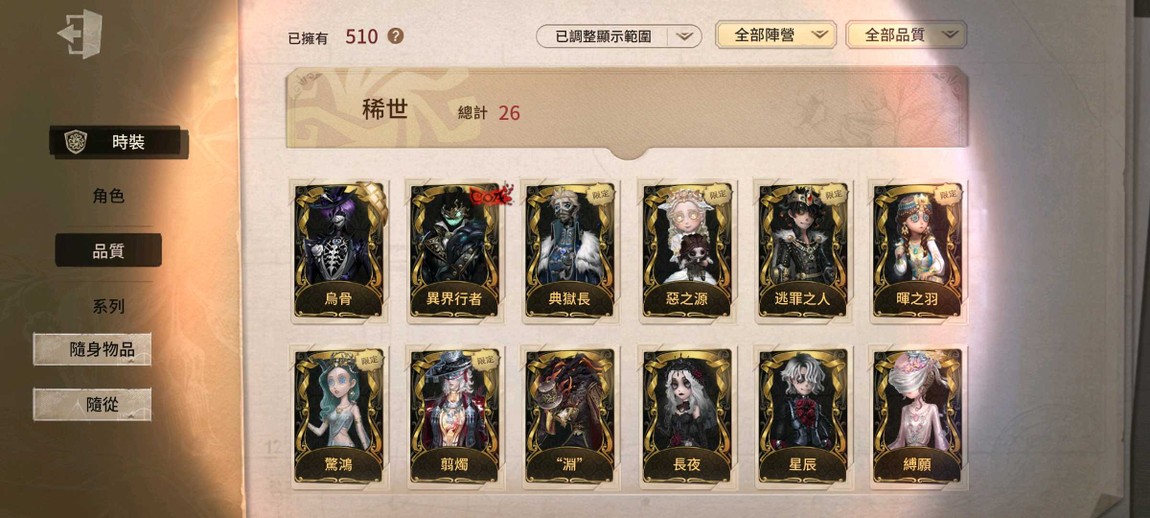 【127等】惡之源、暉之羽、典獄長、驚鴻套等💓可以收藏的漂亮帳,多絕版紫皮,主換(新增天祿