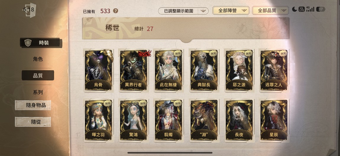 【118等】主推惡之源、典獄長、此在無棲+頭像💓可以收藏的漂亮帳,多絕版紫皮,有2萬+碎片
