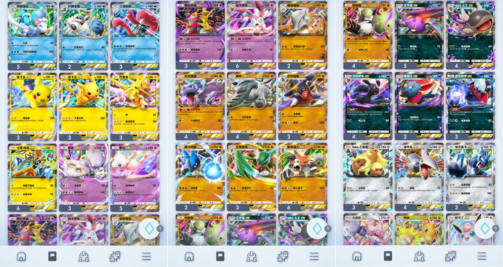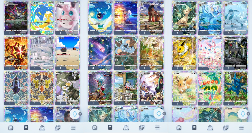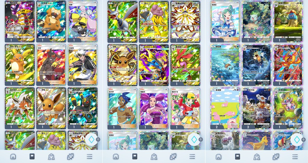 ✦ 最強基因:226/226(全圖鑑) ║ 幻遊島:68/68(全圖鑑) ║ 時空激鬥:155/155(全圖鑑) ║ 超克之光:75/75(全圖鑑) ║ 嗨放異彩:72/72(全圖鑑) ║ 雙天守護者:155/155(全圖鑑) ║ 異次元危機:69/69(全圖鑑) ║ 伊布花園:69/69(全圖鑑) ║ 天與海的指引:161/161(全圖鑑) ║ 未知水域:71/71(全圖鑑) ║ 超級崛起:215/226 ║ 紅蓮烈焰:27/69 (最新卡包!)