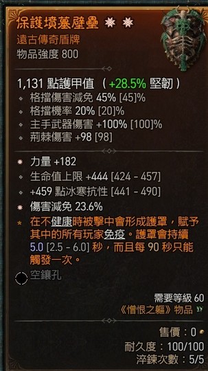 2太古盾牌 力量182 傷害減免23.6% 生命