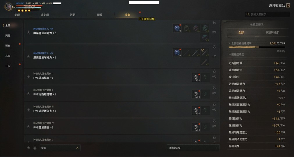 【總收藏】:47% (傷77、命96、str24、物防142) 純近戰無其他職業灌水收藏