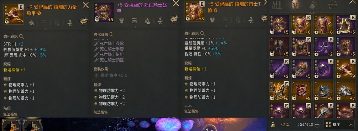 【刻印紫裝】:7祝福死亡騎士頭盔、5祝福死亡騎士手套、2閃耀海賊全套