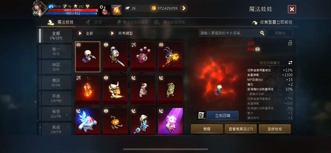 售 5區暴風之神 86王族1紫5紅技;87騎士3紅技