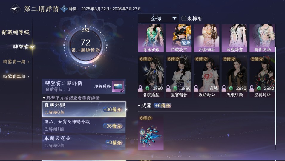 【69等、楓橋夜泊、女、碎夢】楓橋玄機小衣櫃號/13已用天賞/渾天劫/銅幣85w/綁定整組給/可小議