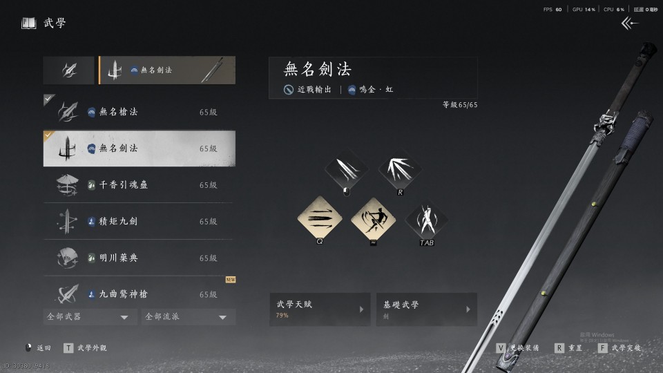 • 主要遊玩流派為 無名劍法