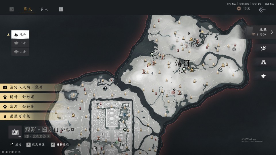 • 所有奇術技能已完整解鎖;所有傳送點基本也都解散了。(部分甚至升級至當前最高階)