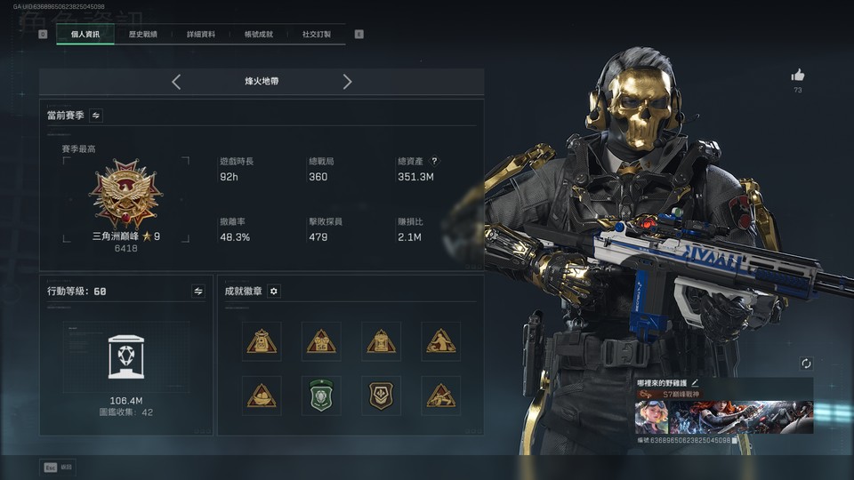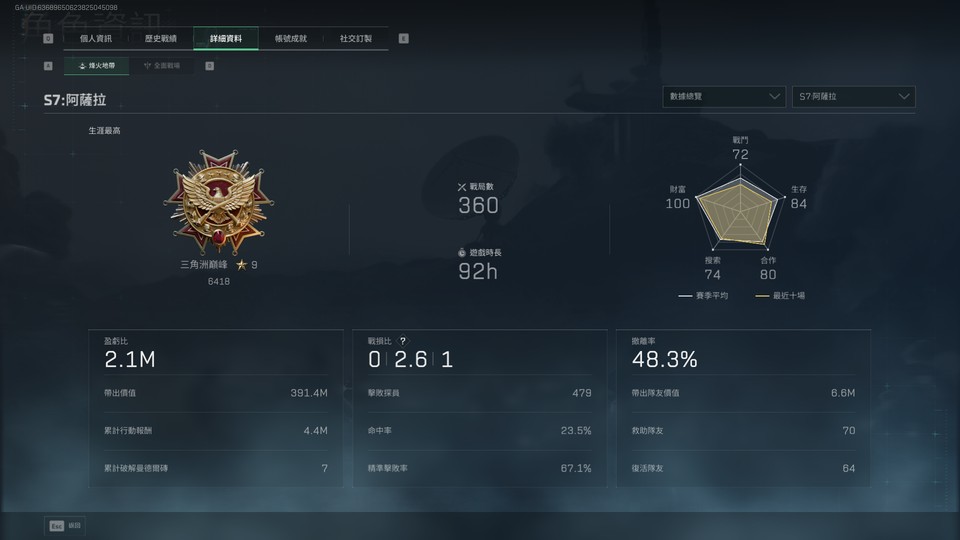 G服 整組Garena給,全紅皮+信條+北極星+兩磚皮,資產350M 有收藏室,紅咖啡豆多 100發Aw 多六套 倉庫多熱門配件,探員金皮,槍械金皮也不少,本賽季33完成 磚皮:優品A騰龍 優品S M7 收藏品:非洲之心 客小圈