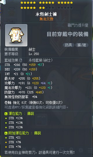 永恆上下衣,數值如圖,不拆賣